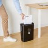 - Shreds up to 6 sheets of 20-pound bond paper at a time; also destroys credit cards (one at a time, through dedicated slot), staples or small paper clips