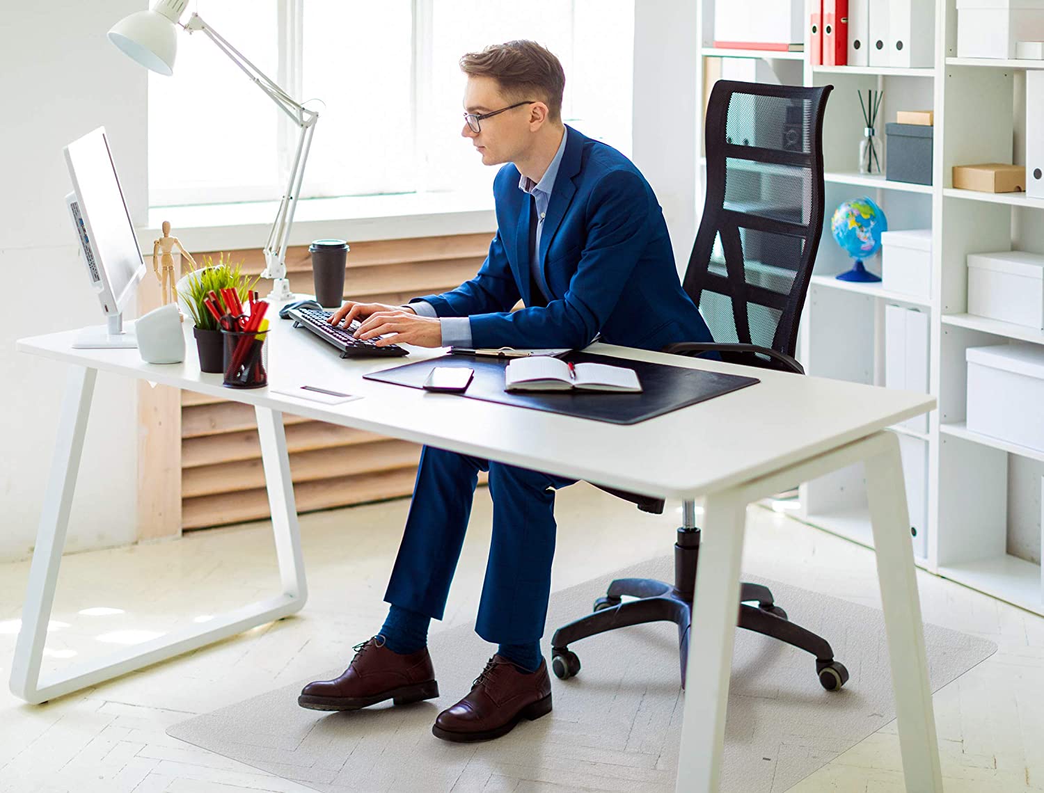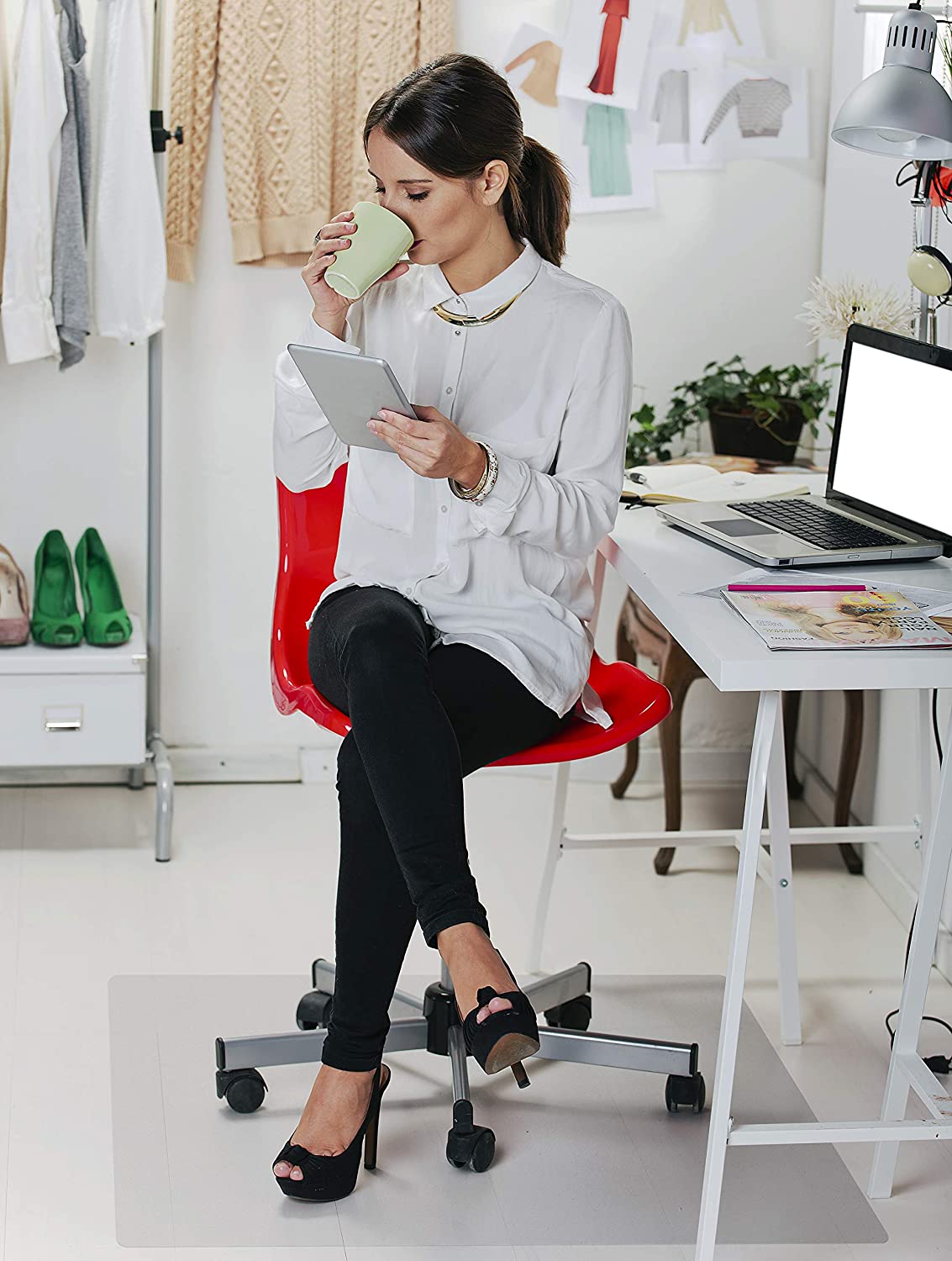 - Smooth glide surface with ample space for easy chair movement; ideal for use at desks or work stations with chairs with either rolling wheels or stationary feet