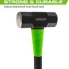 DROP FORGED HEADS: Heat-treated for strength & durability FIBERGLASS HANDLE: Absorbs impact shock and vibrations. RUBBER GRIP: Non-Slip handle lessen user fatigue & provides high striking impact. VISIBILTY: Bright green for easy visibility. 36″ LENGTH: Creates a greater striking impact with minimal force.