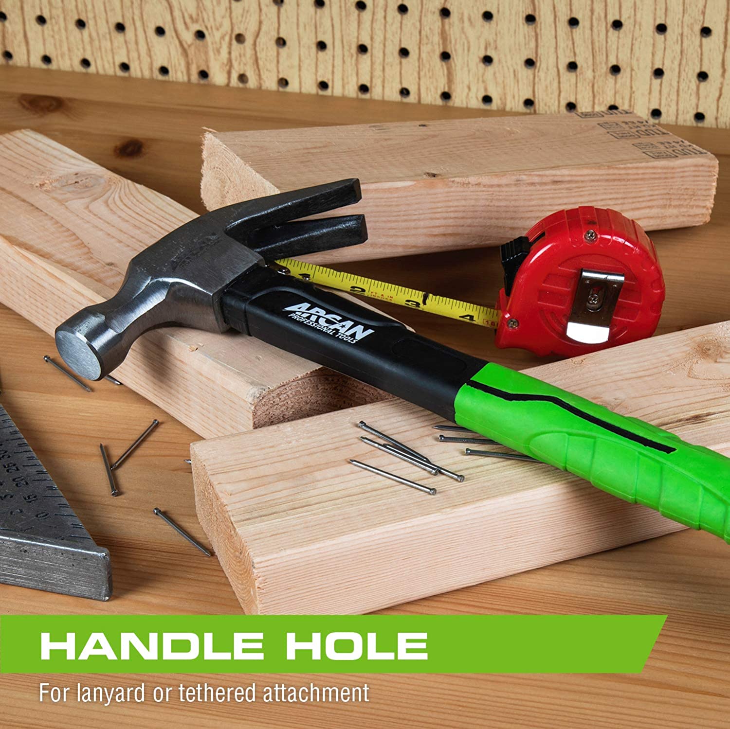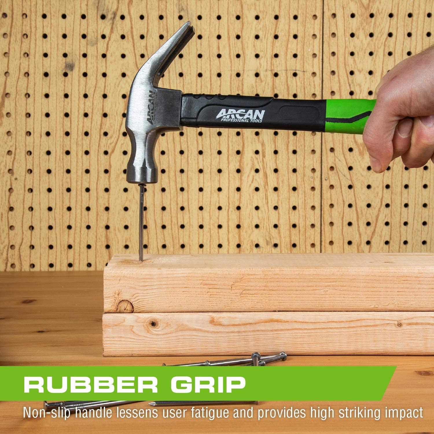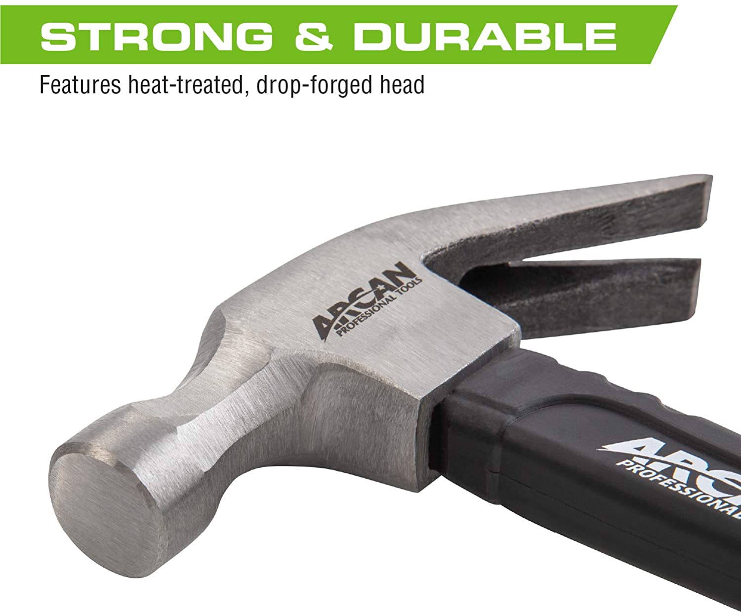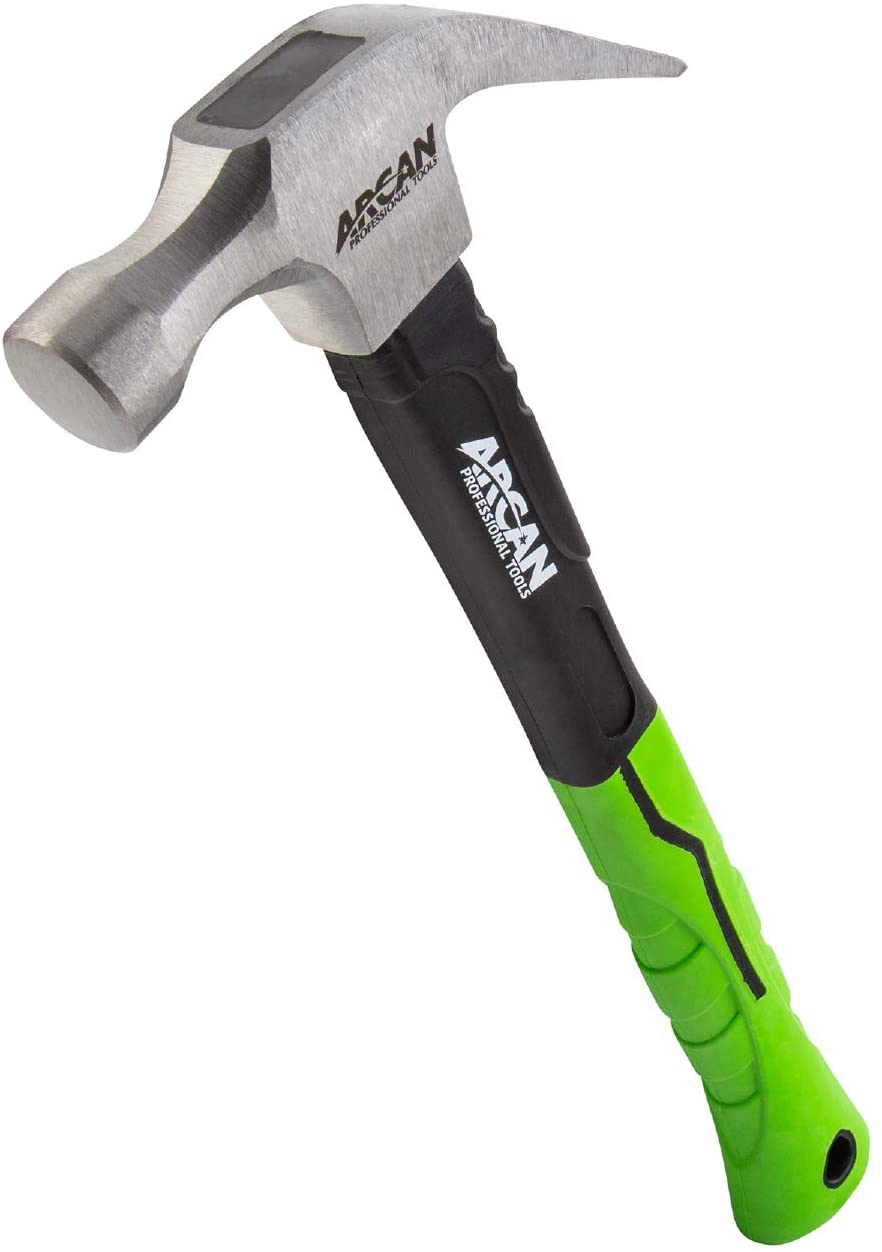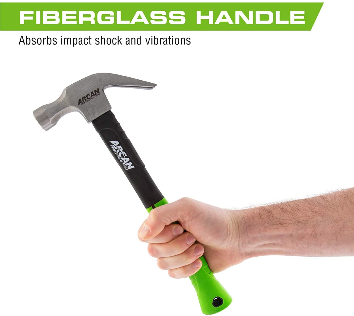 ARCAN 16 Oz Claw Hammer with 13-Inch 2G Fiberglass Handle (AH16C). Strength and durability. Rubber Grip – Non-slip handle lessens user fatigue and provides high striking impact. Fiberglass handle absorbs impact shocks and vibrations.