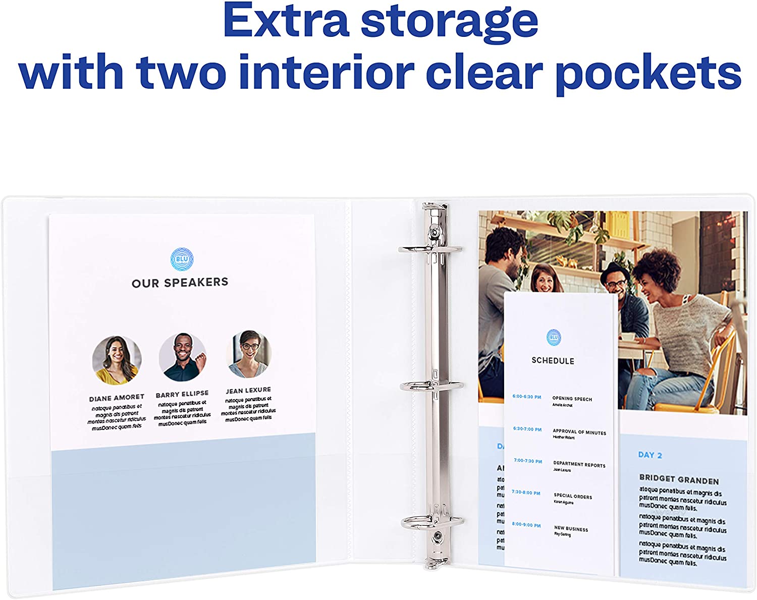 - Extra storage with 2 interior clear pockets; all Economy binders are made with nonstick PVC-free material—no ink transfer