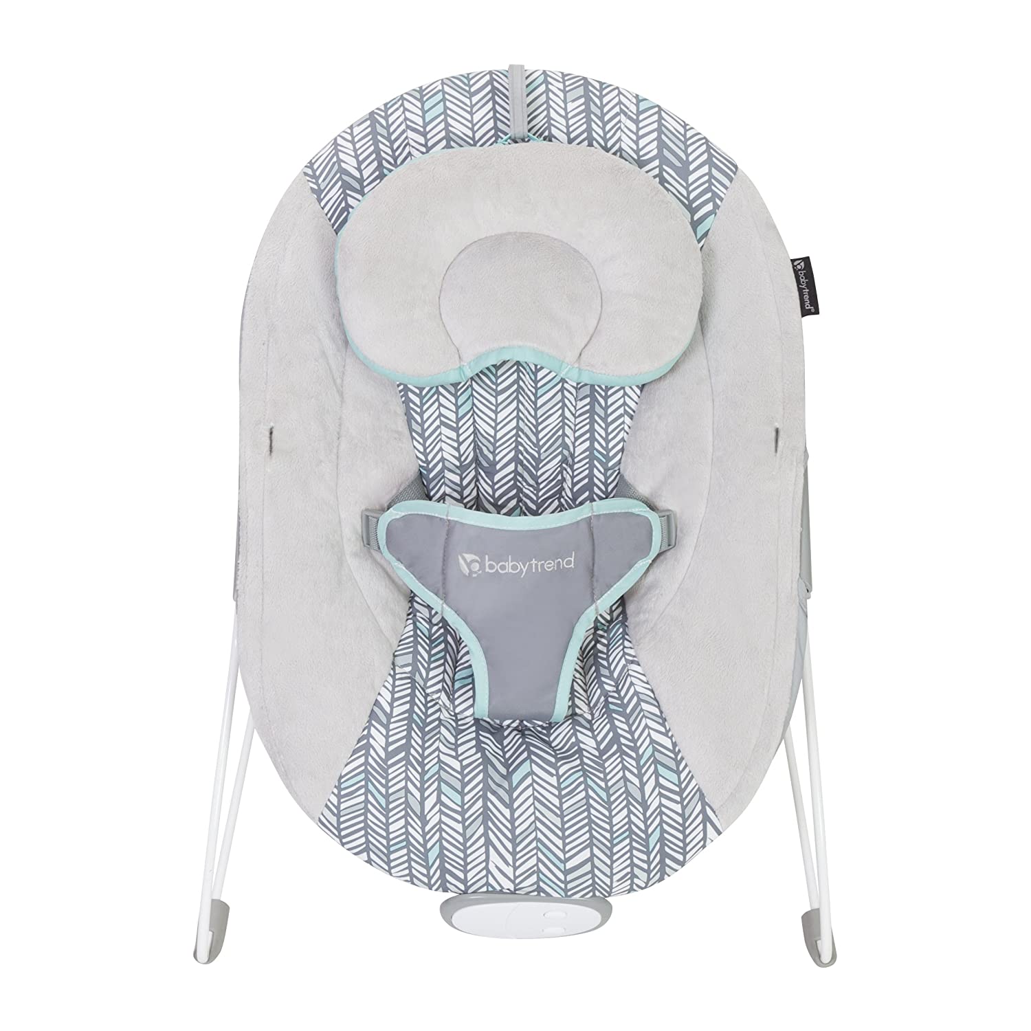 The Baby Trend EZ Bouncer in Ziggy is a must-have for you and your tiny tot. Made with soft cozy fabrics, this bouncer has a comfy seat and a reversible head pillow that can be adjusted and removed as your little one grows. Key features to keep your baby entertained include a removable toy bar with 2 hanging toys and a music center with 8 melodies and calming vibration. Your child will stay comfy and secure with the adjustable 3-point safety harness, crotch cover and adjustable headrest. Recommended for children up to 25 lbs.