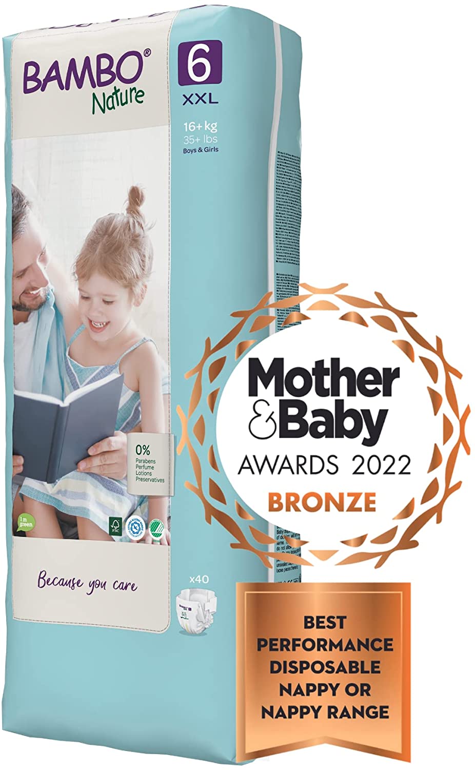 Bambo Nature Premium Eco Nappies, XL Size 6 (34+ lb/16+ kg) 3 x Tall Pack of 40 (Case Saver)