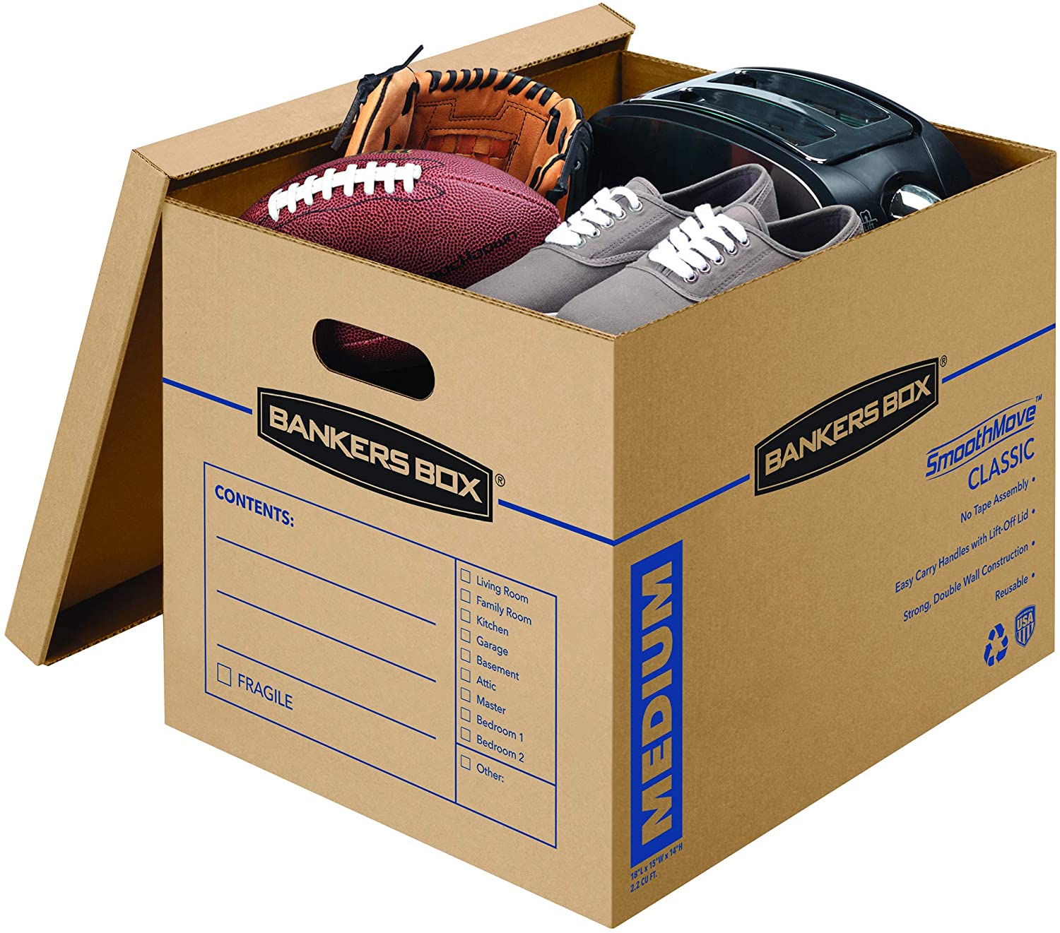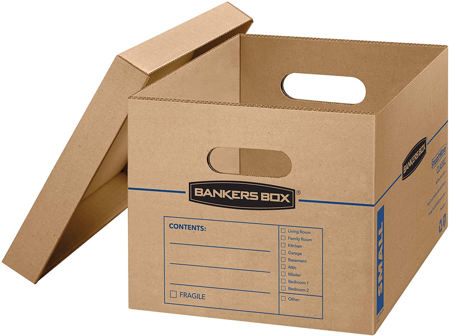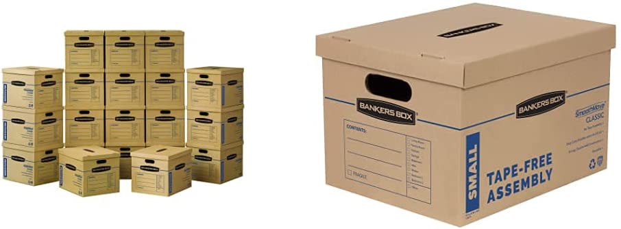 Bankers Box 8817202 SmoothMove Classic Moving Boxes, 20 Pack & SmoothMove Classic Moving Boxes, Tape-Free Assembly, Easy Carry Handles, Small, 15 x 12 x 10 Inches, 10 Pack (7714901), Brown