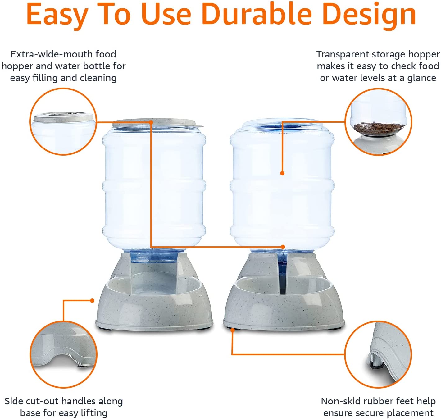 - 2-in-1 bundle: small pet waterer with 1-gallon capacity and small pet feeder with 6-pound capacity; uses gravity to ensure a consistent supply of food and water