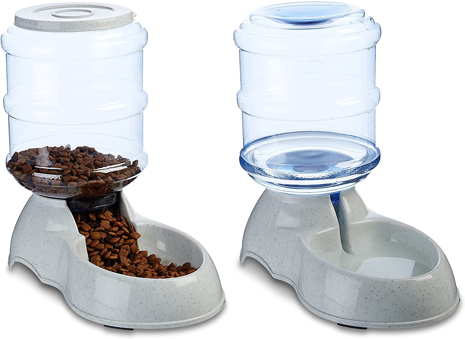 Basics Gravity Pet Food Feeder and Water Dispenser Bundle, Small (1-Gallon Capacity)