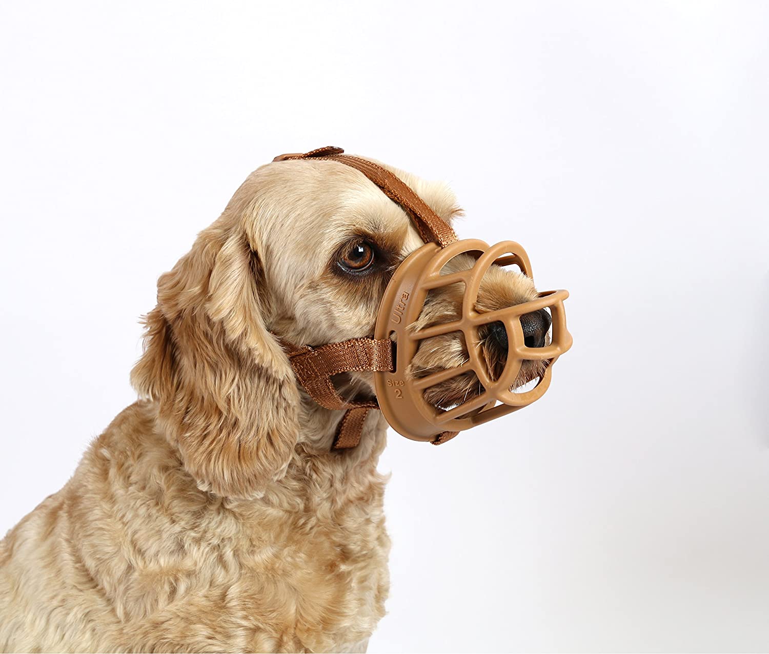 - SAFE & SECURE ergonomically designed safety strapping ensures the muzzle will remain securely in place and features two attachment points using an attachment loop designed to attach to your dog’s regular collar and an optional, removable over-head safety strap