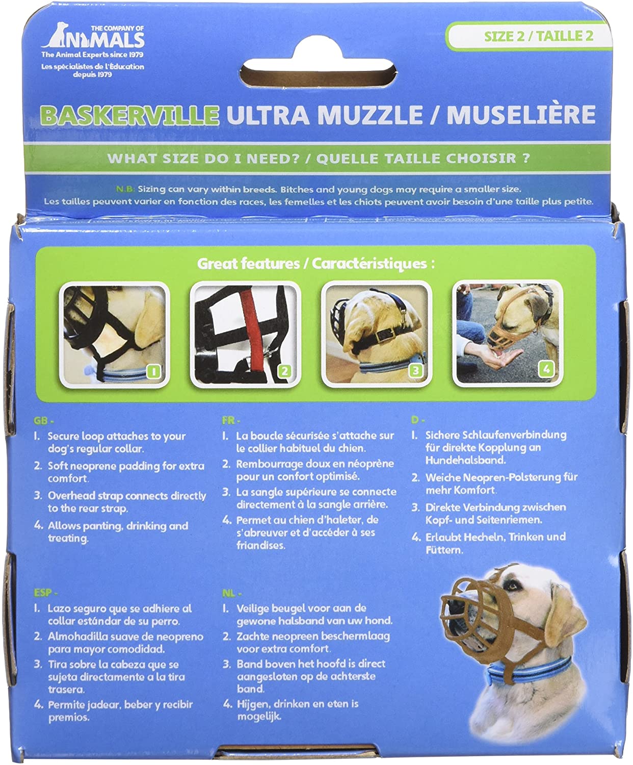 BASKERVILLE Ultra Dog Muzzle- Tan Size 2, Perfect for Small Dogs, Prevents Chewing and Biting, Basket allows Panting and Drinking-Comfortable, Humane, Adjustable, Lightweight, Durable