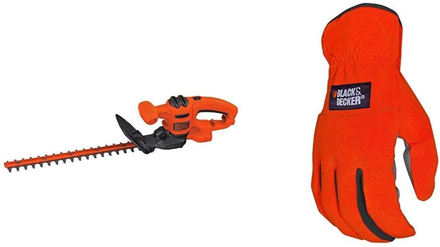 BLACK+DECKER Hedge Trimmer with Easy-Fit All Purpose Glove (BEHT150 & BD505L)
