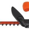 - 17 in dual action hardened steel black for reduced vibration while trimming