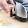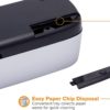 Compact electric punch drills three 9/32″ diameter holes in up to 12 sheets of 20 lb. paper in a standard configuration. Precision steel heads deliver clean punches, and paper remnants drop into the easy-to-clean chip drawer. Top-loading punch also features an adjustable paper guide for easy customization. Electric punch operates on AC power or battery power. Required six AA batteries are sold separately.