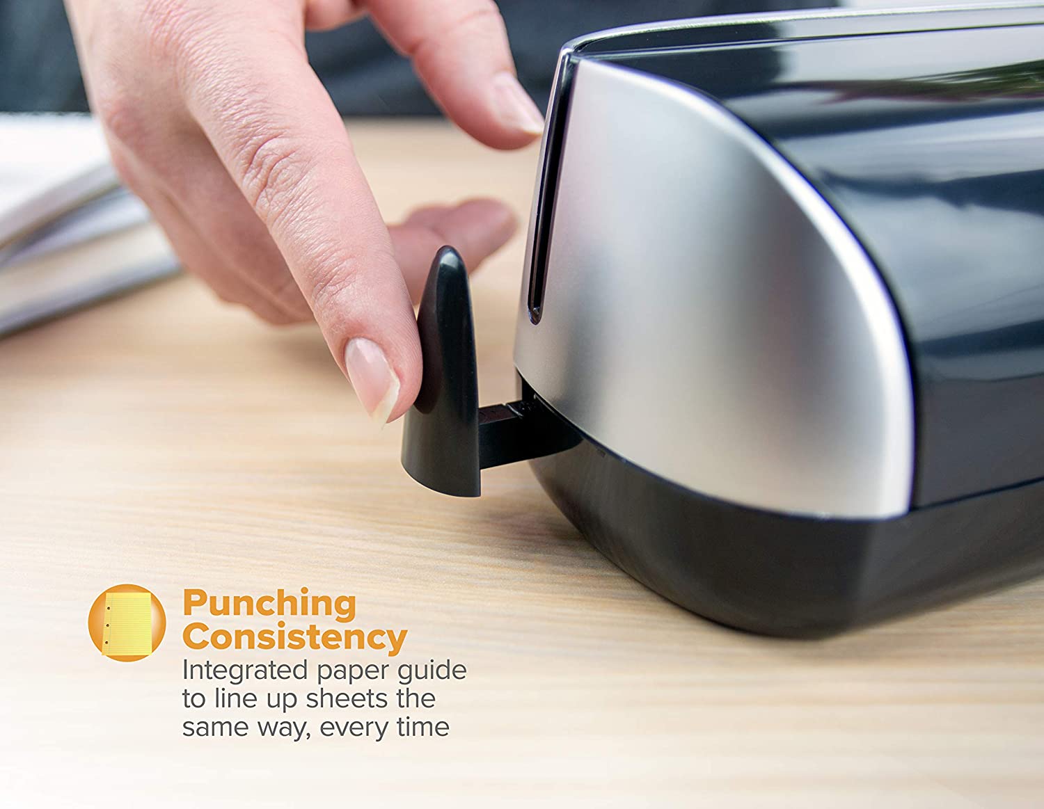 Precision steel punch heads deliver clean punching in standard 3-hole configuration Adjustable paper guide easily accommodates various sized documents Easy-clean chip drawer maintains a clean work environment. Punches 0.28 inches holes Operates on AC adapter (included) or 6 AA batteries (sold separately) NOTE: This item has a max sheet capacity of 12 sheets of paper and may experience issues if used outside of this recommended capacity.
