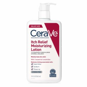 - [ CERAVE ANTI ITCH LOTION ] Temporarily relieves itching associated with insect bites, sunburn, poison ivy while moisturizing dry skin. Lightweight texture that is absorbed quickly for softened skin with non-greasy feel.