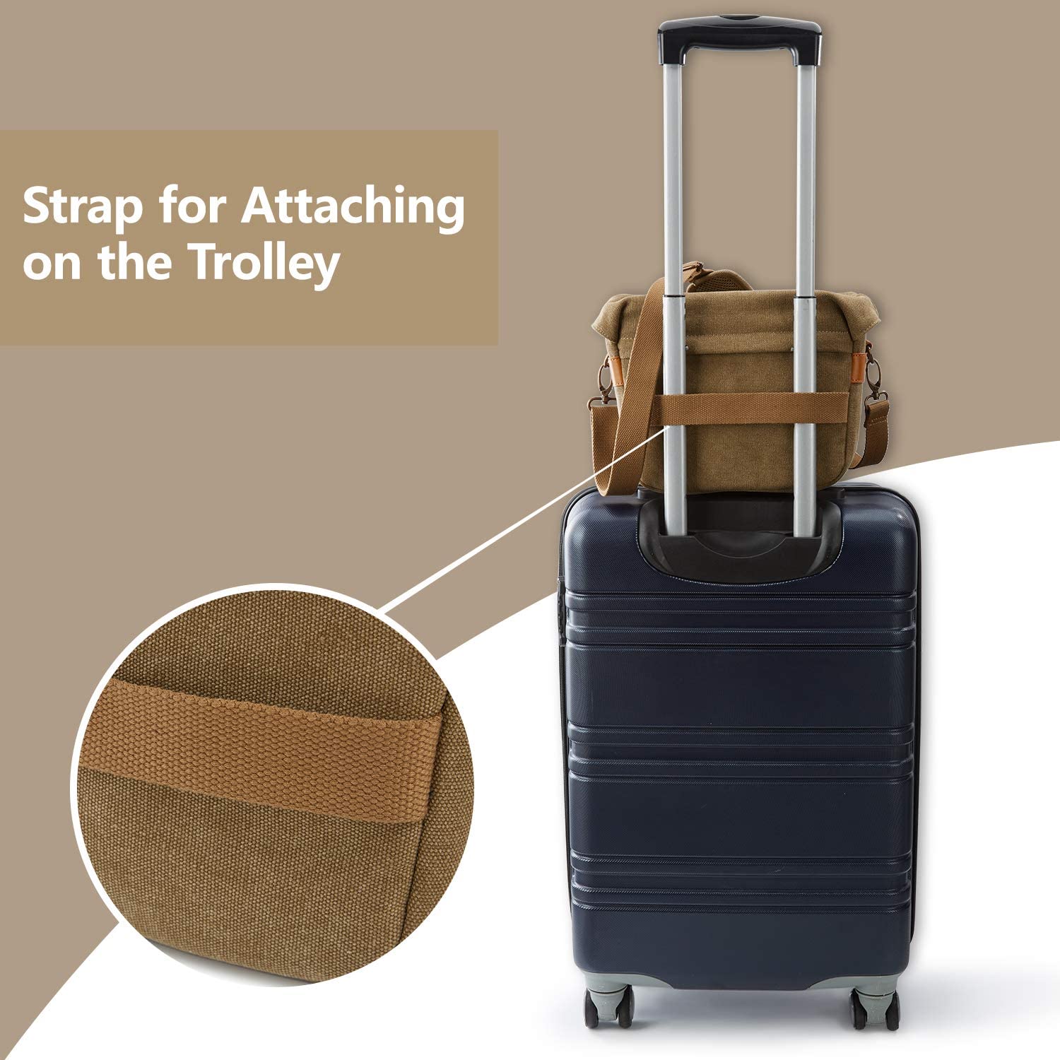 Perfect Size Camera Bag – Dimensions: 11″L x 5″W x 7.9″H. The main compartment for 1 DSLR plus 1-2 exchange lenses and other camera accessories. The front and back pockets to organize phone, batteries, lens cap, SD cards, cable, ect. Customizable Space – Two removable padded dividers to keep camera and lens separated and protected, allow you to customize interior space for different size of camera equipment. Quick Access – The camera case adopts clamshell-style opening, you can quickly open the DSLR camera bag to take out the camera soon. So that you won’t miss those wonderful moments. Keep Camera Safe – Camera case made of waterproof and durable vintage canvas. The thickened padded of interior and the flap on top work together to protect camera gear from bumps and shock. Includes a rain cover to protect the camera from unexpected weather. Stylish Camera Shoulder Bag – Perfect for a day trip or travel and offers practical features for the photographer. Detachable, adjustable padded shoulder strap will provides comfort and versatility. The trolley strap at the back for attaching your suitcase while traveling to free your hands. Detach the interior dividers, you can easily convert it into a stylish everyday shoulder bag.