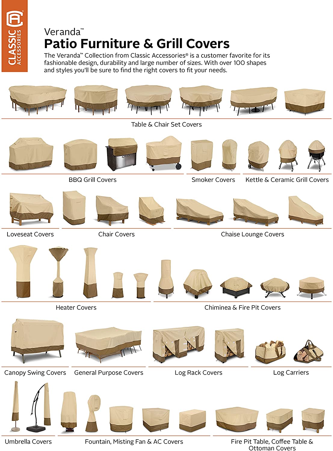 - THE CLASSIC ACCESSORIES DIFFERENCE: Veranda covers go the extra mile with interior bound seams for strength, high-density stitching for durability, padded handles for comfort, and matching webbing for a sophisticated look