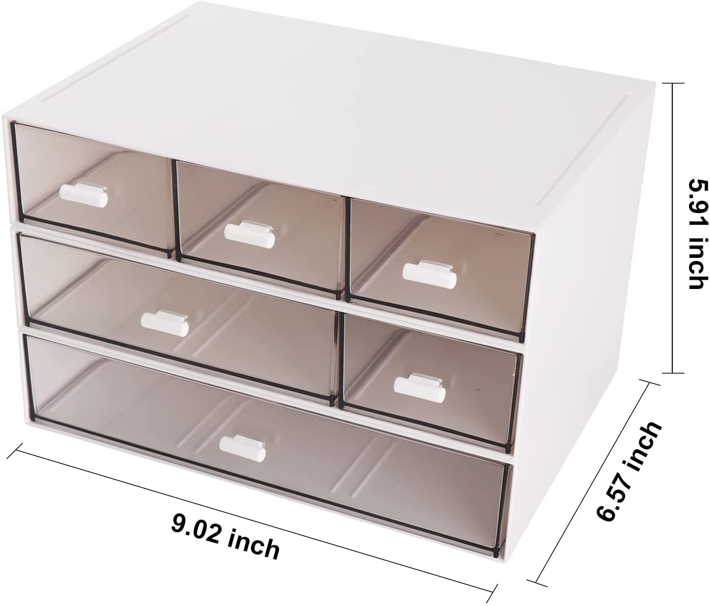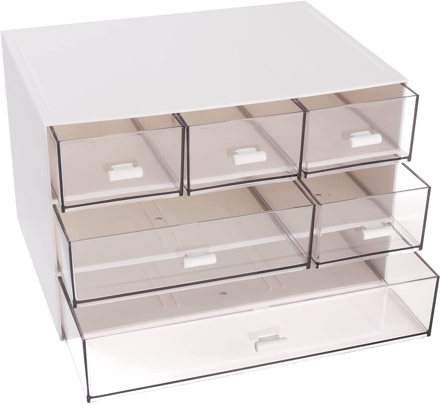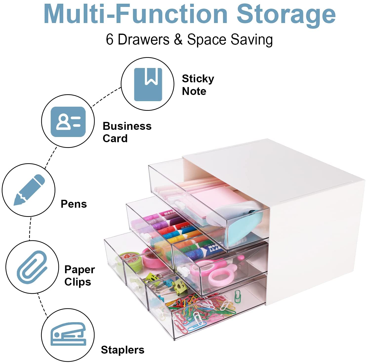 Comix Desk Organizer, Desk Storage Box with 6 drawers, Plastic Makeup Organizer, Desktop Organizer for Office School Home (White)
