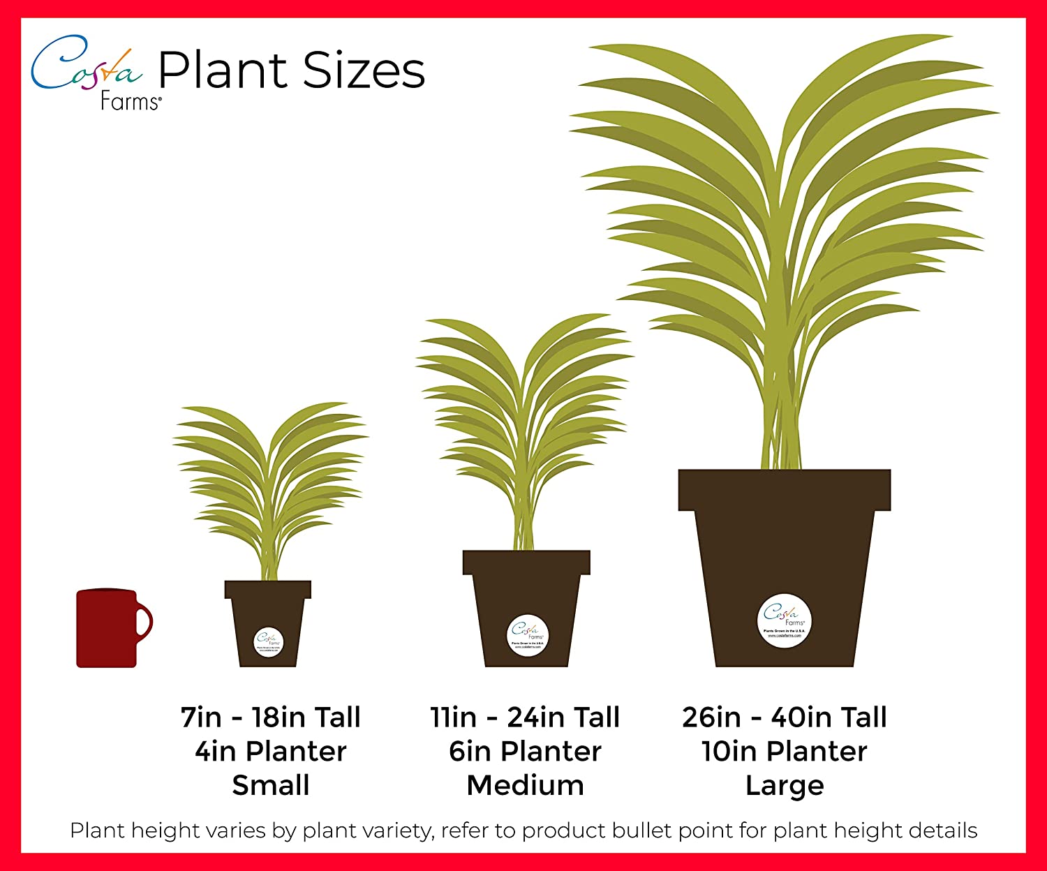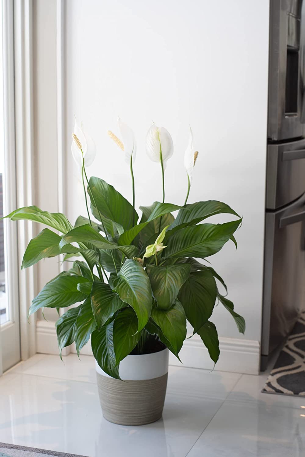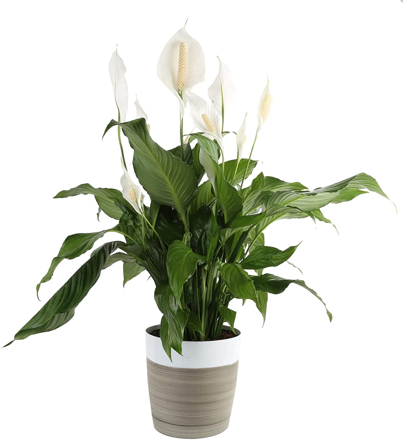 Peace lily shows off dark green leaves with white flowering spaths that rise above the foliage. It grows best near a sunny window. Provide the plant with as much light as possible, without placing it directly in sunlight. Water when the top couple inches of the soil are dry (about once a week) and be sure all excess water drains away. If the soil of Peace Lily becomes too dry, the leaves will wilt but the plant will perk up again when watered. If the container does not have holes, use approximately half to 1 cup of water, adjust as needed for your environment. Do not let the Peace Lily sit in water or overly soggy soil. The height at shipping is approximately 3 feet tall, measured from the bottom of the pot to the top of the plant. The Peace Lily ships in a lightweight, 10-inch decor planter; made from a 100% recyclable #5 material. To avoid water spillage, this container does not have holes. The Peace Lily is a slow to moderate grower depending on its environment and is hardy in USDA Zones 11-12. Give it a boost during the warm months of Spring and Summer with a general-purpose fertilizer that is formulated for house plants. Follow the instructions on the fertilizer package for the best use. When the plant out grows the current container, it is time to repot. To repot the Peace Lily, gently remove it from its current container and place it into a slightly larger container. Fill in any empty spaces with new and fresh soil and water thoroughly. Be aware of third-party sellers; other companies try to imitate our quality. There are no other authorized Costa Farms sellers. Look for ships from & sold by to ensure you’re getting our premium plants. Plants are living things; each one is slightly different, so the plant you receive may vary from the photo. Our growers hand-pick the healthiest and highest-quality plants. We package our plants for shipment with great care so they’ll arrive at your home ready to be displayed. Shipped fresh from our farm to you, Costa Farms is passionate about delivering happy, healthy, beautiful plants. Costa Farms plants are not intended for human or animal consumption. Keep out of reach of children and pets. We’re unable to ship this item to: AK, AZ, CA, GU, HI. Send us your feedback at questions@costafarms.
