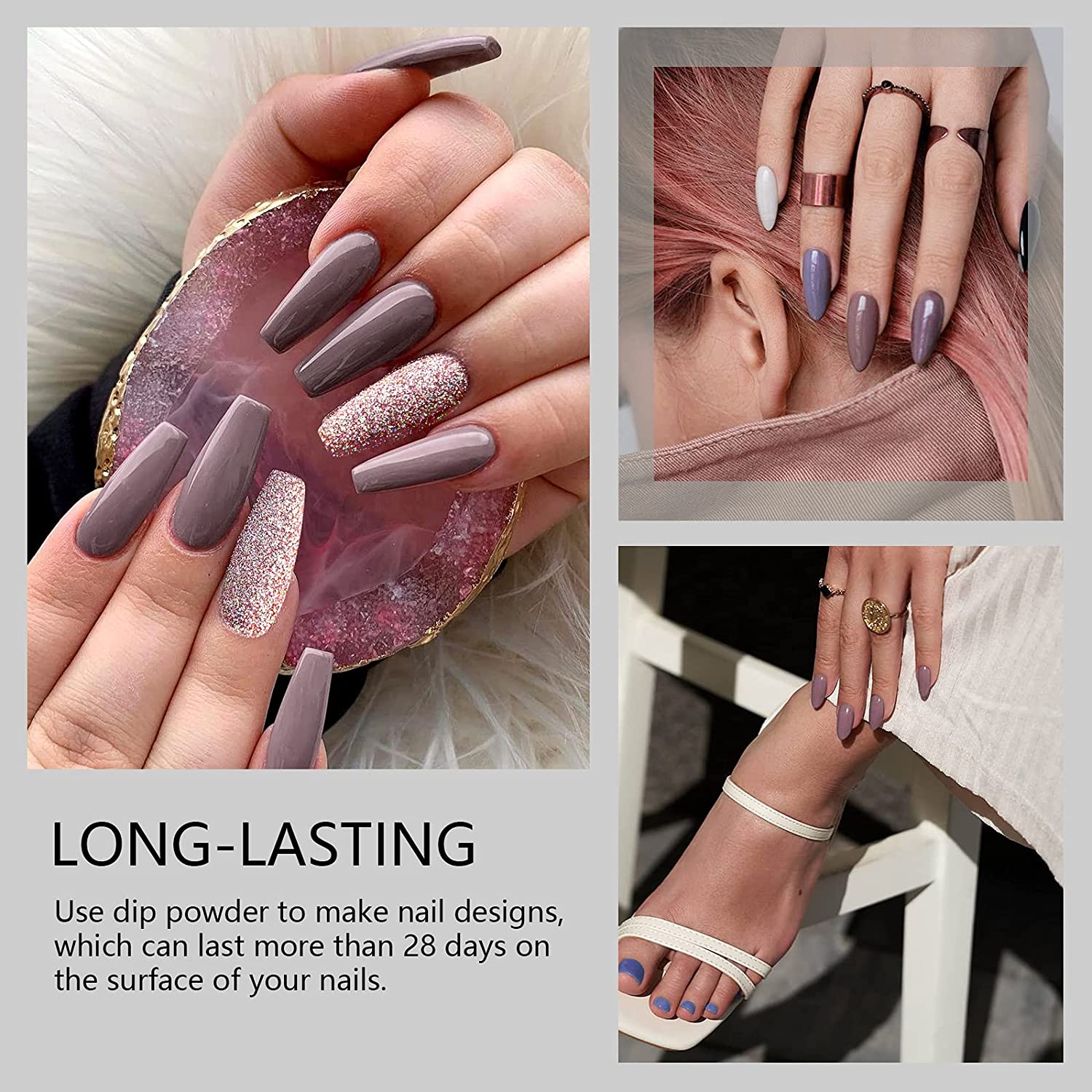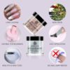 | Top-quality & Long-lasting: dipping powder nail kit will help you to create smoothly finished nails without scratching, chipping, breaking, or peeling off easily. This powder color set is extra-fine, blinker, colorfast, shinier and long-lasting up to 4 weeks |