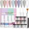 Dipping Powder Nail Kit 19 Pcs – 10 Colors Glitter Pink Nude White Clear Top Coat Dip Powder Nail Kit with Brush Dipping Powder Kit for Nails