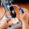 Dremel Drill Press Rotary Tool Workstation Stand with Wrench- 220-01- Mini Portable Drill Press- Tool Holder- 2 Inch Drill Depth- Ideal for Drilling Perpendicular and Angled Holes- Table Top Drill , Silver