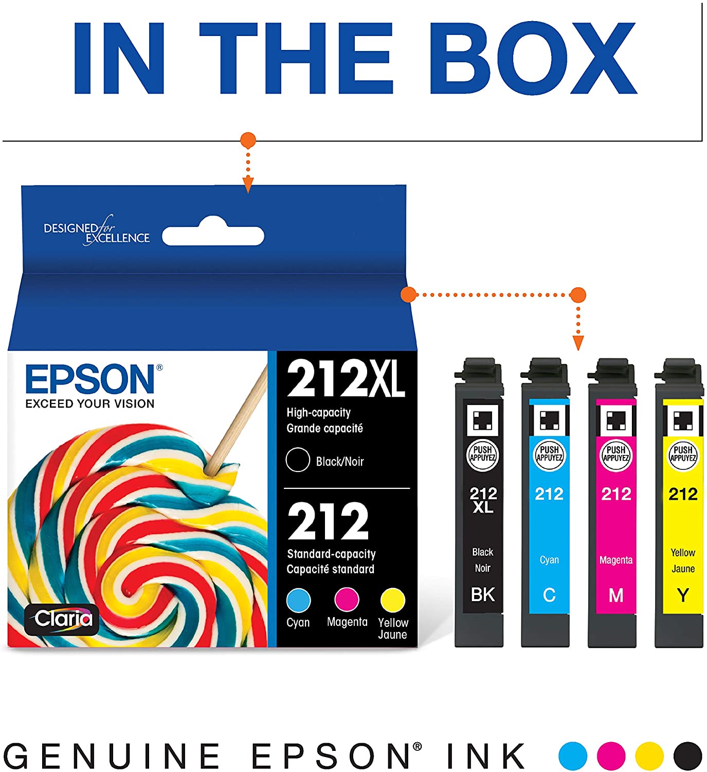 EPSON T212 Claria -Ink High Capacity Black & Standard Color -Cartridge Combo Pack (T212XL-BCS) for select Epson Expression and WorkForce Printers