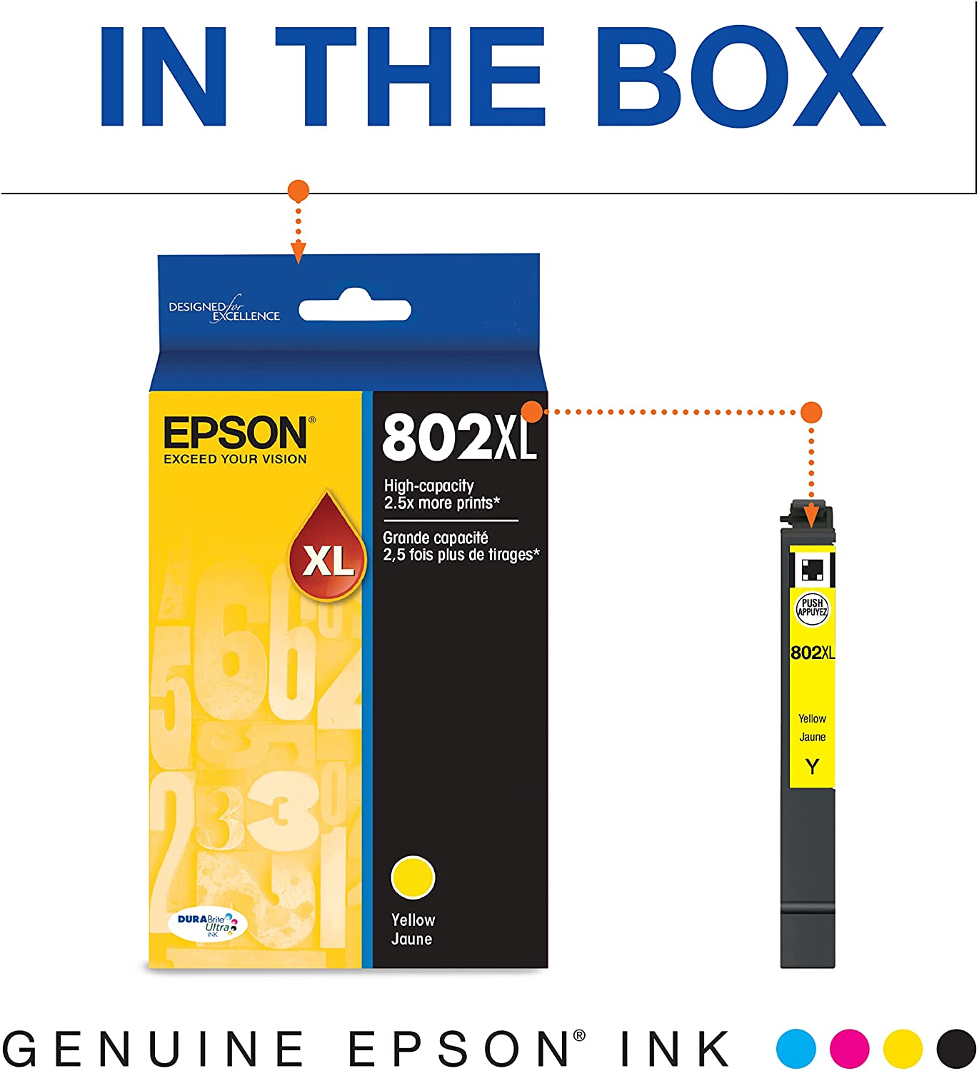 EPSON T802 DURABrite Ultra -Ink High Capacity Yellow -Cartridge (T802XL420-S) for select Epson WorkForce Pro Printers