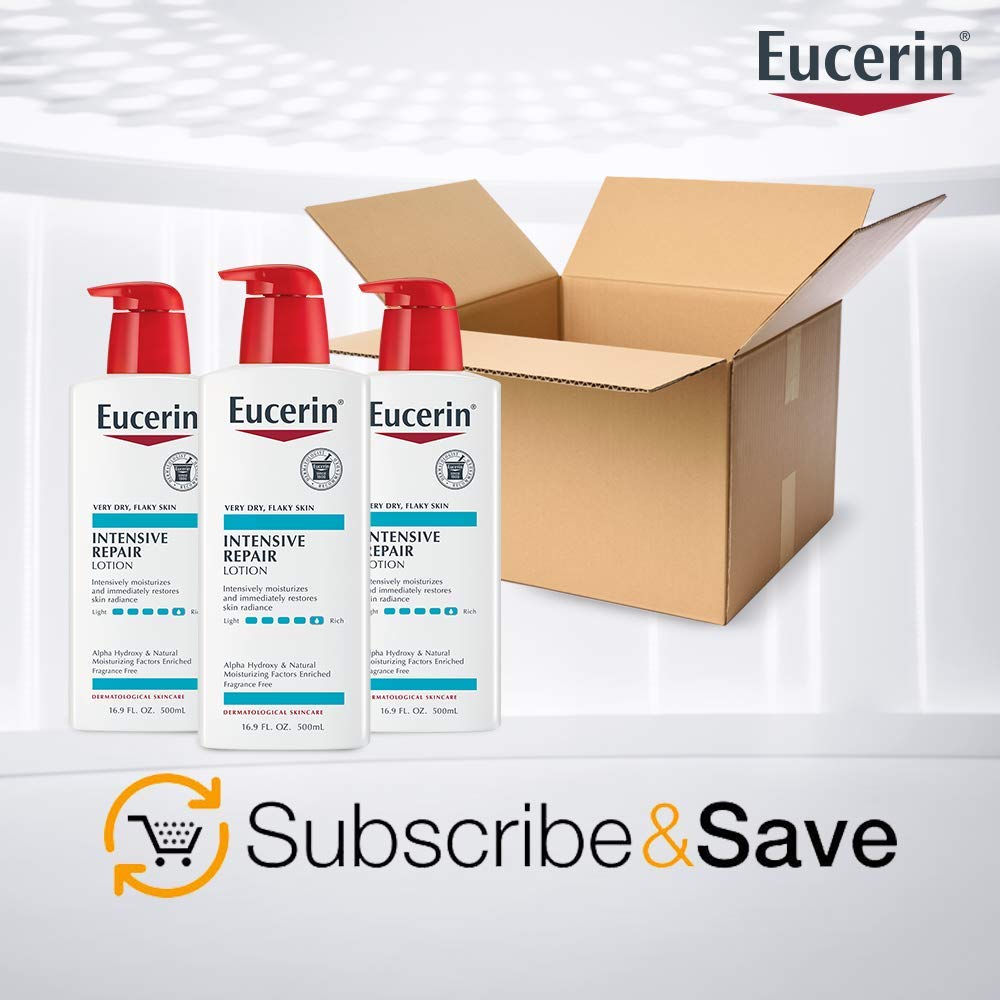 - Enriched Body Lotion: This Eucerin body lotion for dry skin is enriched with Alpha Hydroxy and Natural Moisturizing Factors Includes three (3) 8.4 fluid ounce bottles of Eucerin Intensive Repair Body Lotion