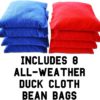 The GoSports Wooden CornHole sets are built using all wood materials to provide the ultimate CornHole experience. The games are handcrafted from 100% wood as they do not include any composite materials or plastics. The 4ft x 2ft size is made to ACA regulations and the 3ft x 2ft is a trimmed down version for greater portability. The top surface is 1/2inch varnished cabinet-grade plywood (ACA regulation), that provides the perfect amount of slide. Both sizes are made using handcrafted pine wood frames, featuring mitered corner joints which are far superior to the shoddy construction of the ‘homemade style’ sets that simply have 2x4s sloppily nailed together. The wooden legs are retractable and are held in place by robust 3/8inch galvanized steel bolts with wing nuts. One of the greatest features of the GoSports set is we were able to engineer the weight of each set down to a manageable 38 pounds for the 4ft x 2ft and 33 pounds for the 3ft x 2ft without sacrificing gameplay. Compare that to the traditional ‘homemade style’ sets that weigh in at a backbreaking 60+ pound. This weight savings means you will actually want to bring your CornHole game with you where ever you go. While the games come with a traditional varnished wood surface, they can easily be painted or customized with the NFL or NCAA decals. Also included are 8 regulation size all-weather CornHole Bags which measure 6inch x 6inch and weigh 1 pound each. These bags are filled with recycled plastic pellets, but unlike corn, they will not rot if they get wet. Overall, this is a well built CornHole set for CornHole purists.