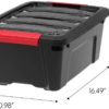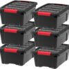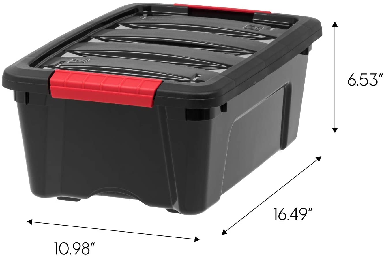 IRIS USA Plastic Storage Bin Tote Organizing Container with Durable Lid and Secure Latching Buckles, 12 Qt, 6 Count, Black & Red