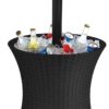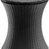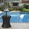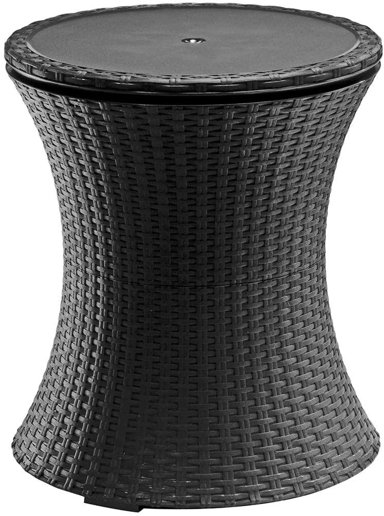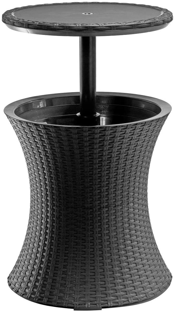 Built in drainage plug makes cleanup a breeze Beverage cooler keeps drinks ice cold for up to 12 hours Sleek contemporary design blends with a wide variety of indoor or outdoor patio decor Table top locks in place for easy access to drinks Weather-resistant – can be left outside without worrying about rust, decay and other weather-related damage Easy to assemble, easy to maintain and easy to use Perfect centerpiece for your outdoor gatherings or summertime parties