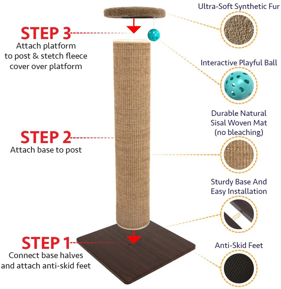 Kitty City Premium 32 inch Tall Woven Sisal Carpet Cat Scratching Post, Cat Scratching Furniture, Cat Post, 15.8 x 15.8 x 32 inches