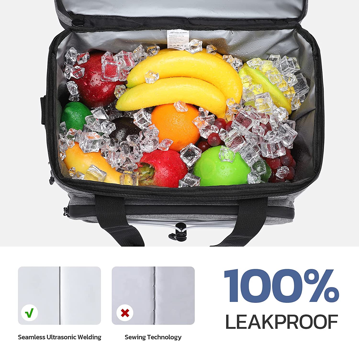 EXTRA LARGE CAPACITY – Extra-large size yet weighs only 1.98 lbs. The Maelstrom Icy Hollow Soft sided cooler will hold up to 30 cans of your favorite drinks for long lasting coldness. Whether it’s camping, hiking, picnicking, or a BBQ party, this cooler bag easily packs a lot of food, fruits, beer, meat, or even seafood together. It’s large enough to carry all. STAYS COLD LONGER – Thoughtful 5 layer insulation design. Exterior surfaces are made of rip-stop 600D Oxford materials plus one layer of waterproof PVC. Interior layers are thicker, reinforced food-grade PEVA materials with seamless ultrasonic welding for 100% leakproof and tear-resistance. A built-in EPE foam middle layer and 210D liner add additional insulation, allowing the Maelstrom beach cooler to keep food or drinks cold for up to 12 hours. DURABLE – Maelstrom travel cooler have double-stitched carry options. All pick-up points, the shoulder straps and carry handles are reinforced. This cooler bag can handle more weight than you’d prefer to carry. Capacity: 14.8*9.4*11.6 inches, 27 L of ice and drinks. DOUBLE-DECKER UNIQUE DESIGN – Great design that can be stored easily. Besides the extra large main bag, Maelstrom designed a foil insulated top compartment to store sandwiches, frozen food, fruits, food essentials or utensils. Because of the reinforced layers, this lunch cooler bag can be folded flat and stowed easily in your trunk or under a car seat. Convenient to carry around! VERSATILE – Suitable for all outdoor activities as an all-around soft sided cooler for camping or road trips. It’s the perfect size for food delivery services and a great solution to transport groceries from the store or farmer’s market to your kitchen at home.