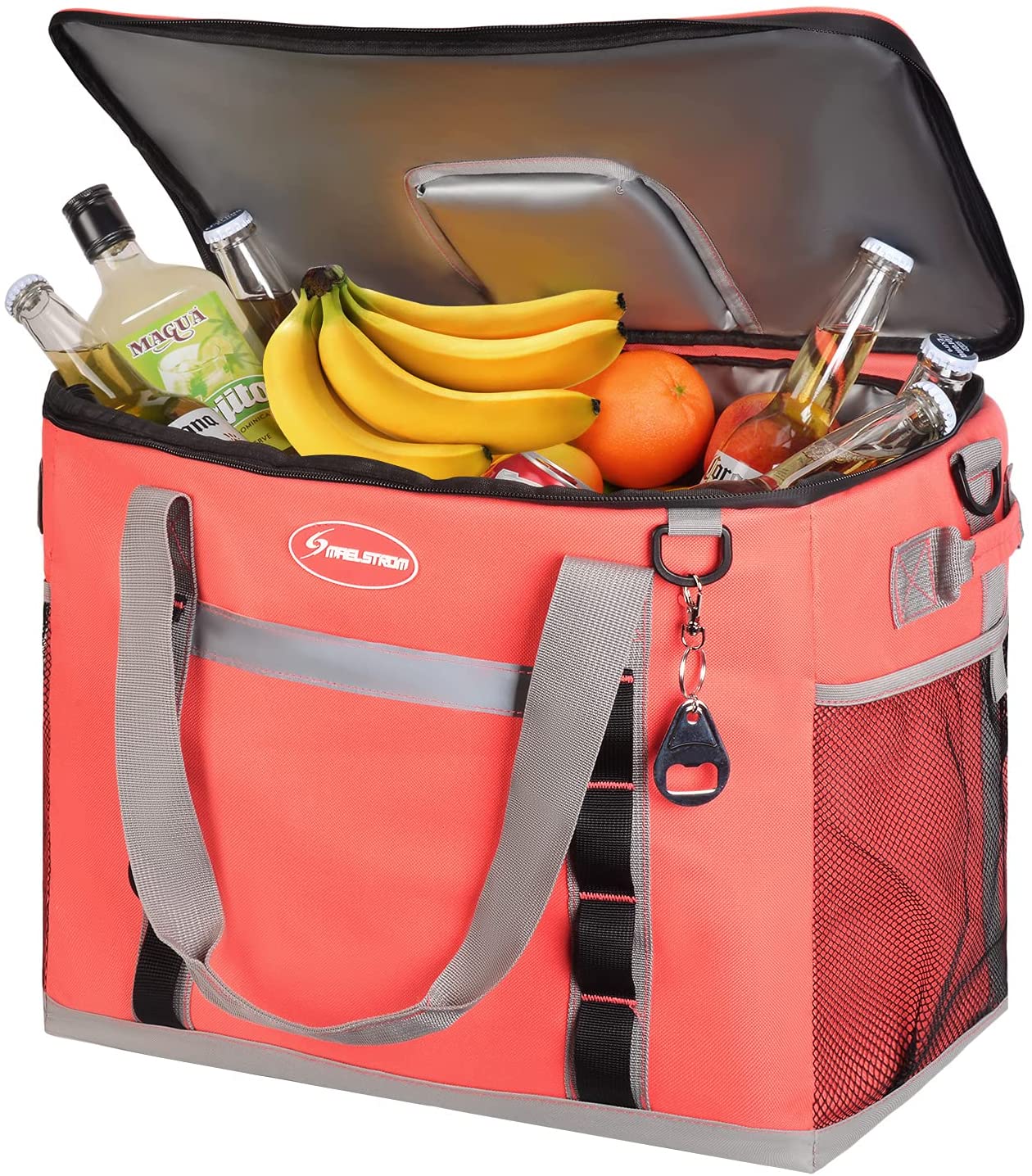 EXTRA LARGE CAPACITY – Extra-large size yet weighs only 1.65 lbs. The Maelstrom Icy Hollow Soft sided cooler will hold up to 75 cans of your favorite drinks plus 2-4 ice packs; or with 60 cans you can add 15 lbs. of ice for long lasting coldness. Whether it’s camping, hiking, picnicking, or a BBQ party, the cooler bag easily packs a lot of food, fruits, beer, meat, or even seafood together. It’s large enough to carry all picnic essentials for the whole family! STAYS COLD LONGER – Thoughtful 5 layer insulation design. Exterior surfaces are made of rip-stop 600D Oxford materials plus one layer of waterproof PVC. Interior layers are thicker, reinforced food-grade PEVA materials with seamless ultrasonic welding for 100% leakproof and tear-resistance. A built-in EPE foam middle layer and 210D liner add additional insulation, allowing the Maelstrom Icy Hollow Soft Sided Cooler Bag to keep food or drinks cold for up to 12 hours. DURABLE – Maelstrom Ice Hollow Soft Sided Cooler Bags have double-stitched carry options. All pick-up points, the shoulder straps and carry handles are reinforced. This cooler bag can handle more weight than you’d prefer to carry. Capacity: 18x12x13.8 inches, 13 Gallons of ice and drinks. UNIQUE DESIGN – Top pull tab with Velcro opening design, easy to access your food without having to open the zipper around the whole top cover, keeping contents cool/warm longer. Ergonomic design with two different ways to carry – adjustable straps and a carrying handle. An integrated bottle opener gives you a quick access to pop open a bottle of beer. VERSATILE – Suitable for all outdoor activities as an all-around soft sided cooler for camping or road trips. It’s the perfect size for food delivery services and a great solution to transport groceries from the store or farmer’s market to your kitchen at home.