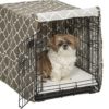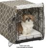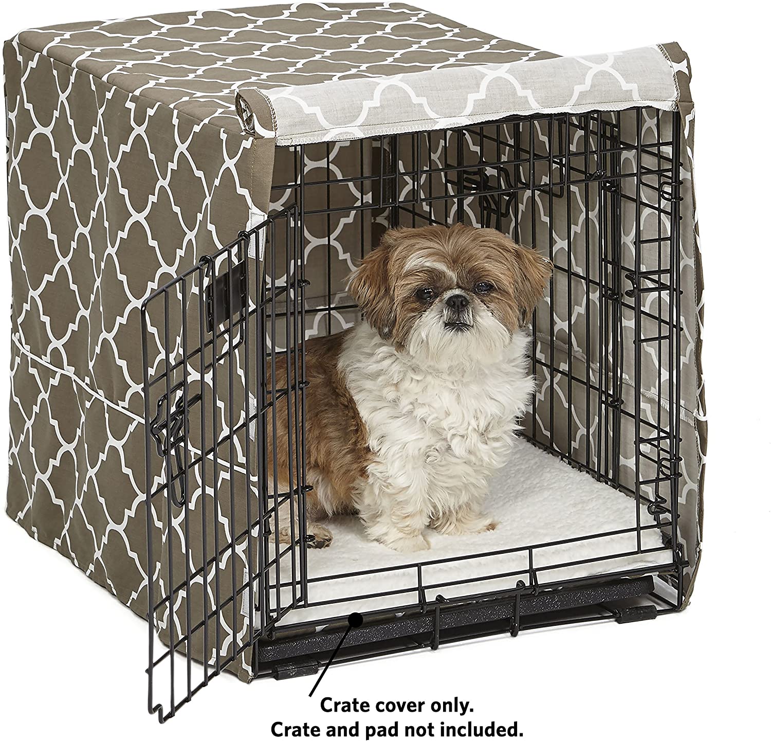 - Teflon-protected dog crate cover provides the privacy, security & comfort that dog instinctually needs & desire as recommended by Veterinarians, Breeders & Trainers. Crate cover fits most 1 & 2 door folding metal dog crates 24″ L, brown geo pattern