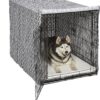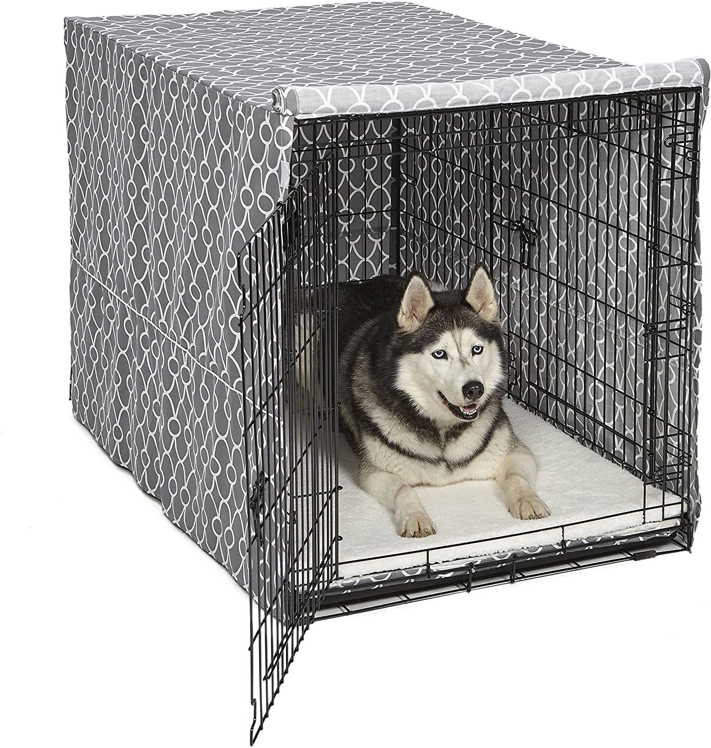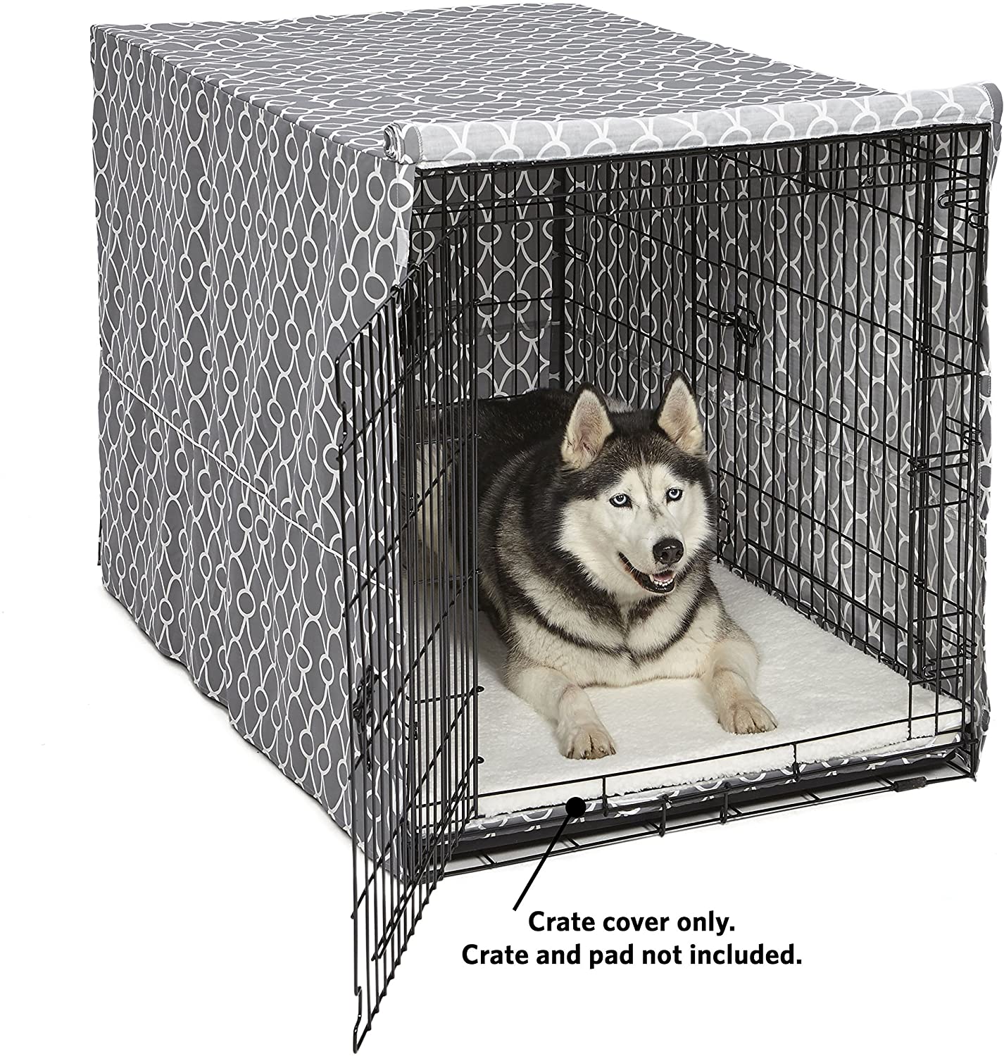 - Teflon protected dog crate cover provides the privacy, security & comfort that dog’s instinctually need & desire as recommended by Veterinarians, Breeders & Trainers. Crate cover fits most 1 & 2 door folding metal dog crates 48 inches L, gray geo pattern