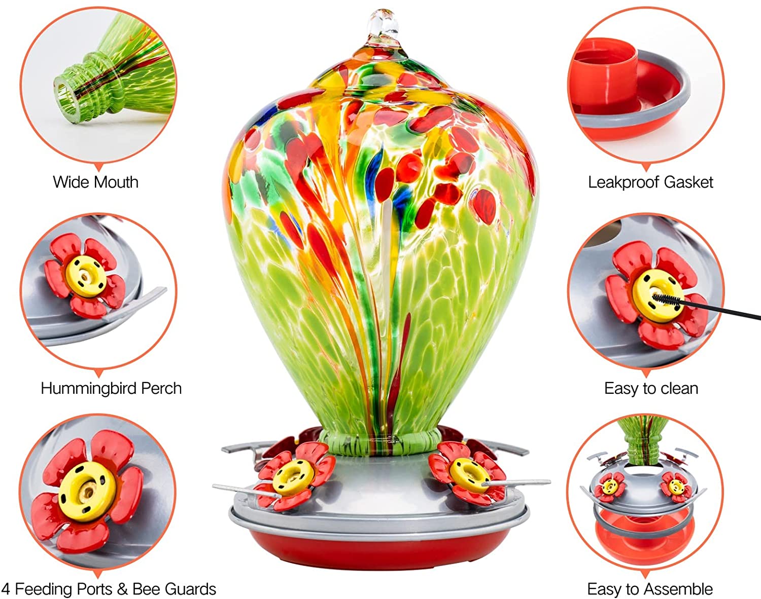 - CONVENIENT TO USE: Easy to assemble, fill, and clean, the base is tightly sealed with a leak-proof gasket to prevent nectar from leaking.