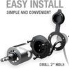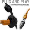 AC Port Plug – A 125-volt power inlet socket with an integrated 16-inch outdoor extension cord for a car, boat, marine, truck, trailer, pickup, RV, industrial and electrical applications Waterproof – A rugged, waterproof ac electrical power inlet receptacle featuring a pressure fit rubberized cover rated for outdoor use and protects against the elements Peak Performance – Rated at 15-amps with heavy-duty 14 AWG copper wiring to maximum power flow and full-sized AC port prongs for maximum conductivity Plug-N-Play – A simple flush mount flanged power inlet that’s easy to install, requiring zero cable modification or hand wiring, and mounts into a 2-inch hole size Multiple Uses – An outdoor extension cord designed for various uses, including onboard battery chargers, bumpers for engine block heaters, outdoor electrical outlets, and more