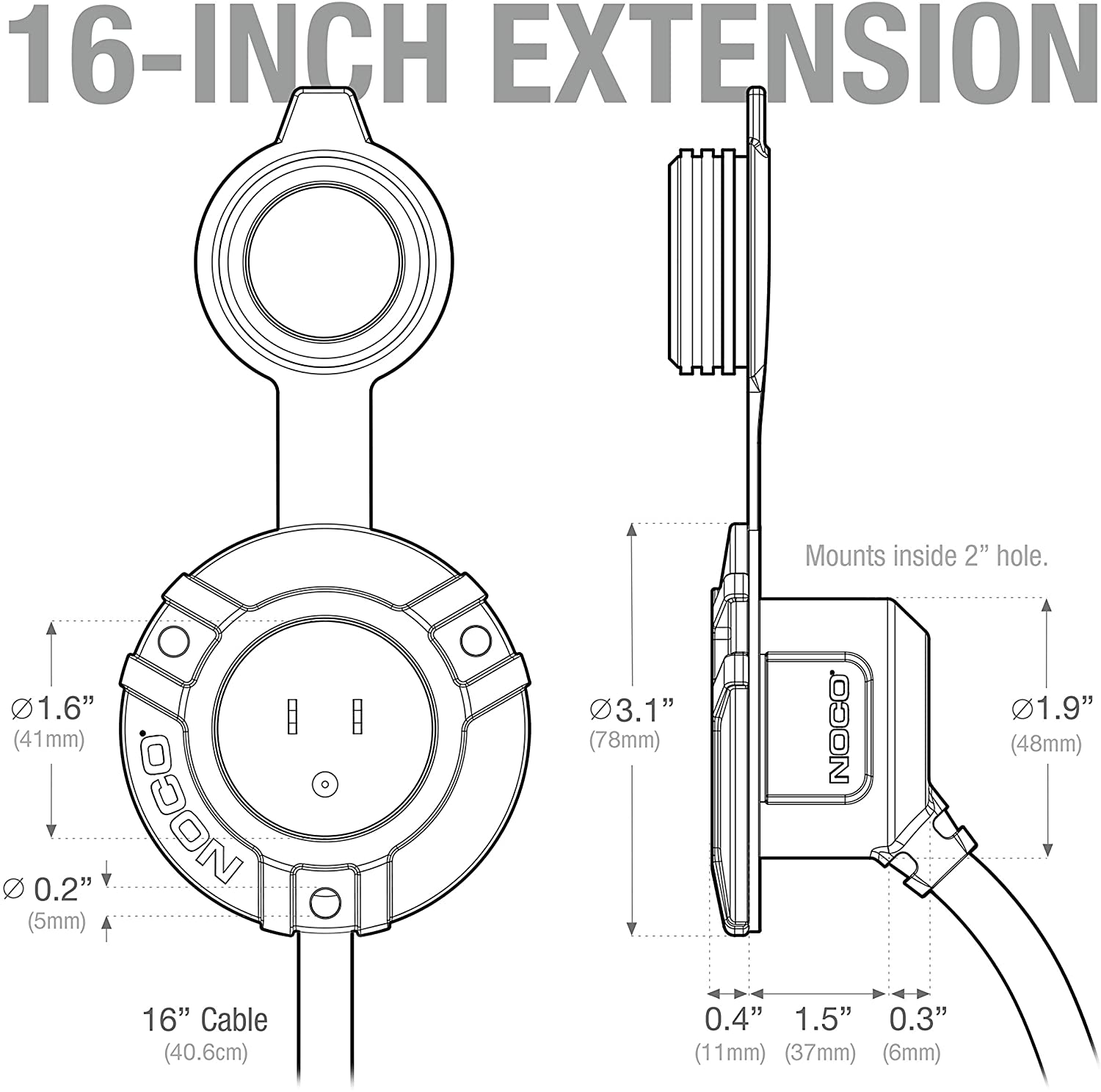 NOCO GCP1 15 Amp AC Port Plug, 125 Volt Power Inlet Socket, and Waterproof Electrical Outlet Receptacle Box with 16-Inch Integrated Outdoor Extension Cord