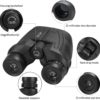 Feature: A real color reproduction, no color distortion under Multi-coated lens. This binoculars can be used for night vision with some light but not for completely dark night. Brighter, not eye strain, with a high transmittance of 99%. Large eyepiece, smooth center and right eye focus knob provides easy yet precise focal adjustment. Two adjustable rotating goggles eyepiece can more focus on the view and more fit for the glasses wearer. Multi-use in hunting, hiking, exploring, viewing, traveling, bird watching, concert, opera, football games, outdoor sports etc. Specifications: Model:12×25 Objective lens diameter: 25mm Eyepiece diameter: 15mm Near focal distance: 5m Exit pupil distance: 20mm Objective lens coating: FMC broadband Focus system: Center and Right eye Prism system: BAK4 Prism Angle of field: 7. 5° Field of view: 273ft/1000yds Weight of binoculars: 0. 65 pounds Item Dimensions: 4.00x 4.40×1.90 inches Waterproof grade: Life waterproof Package included: Binoculars*1 Carrying bag*1 glass cleaning cloth*1 skid-proof rope*1