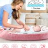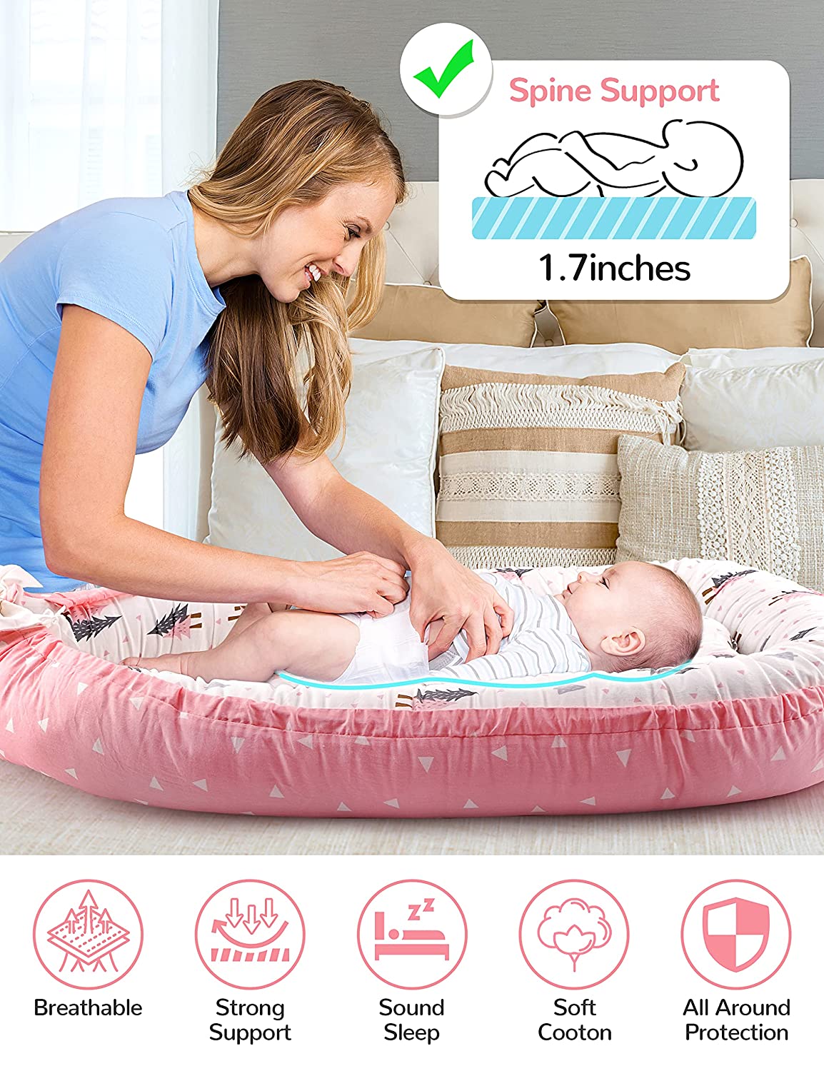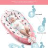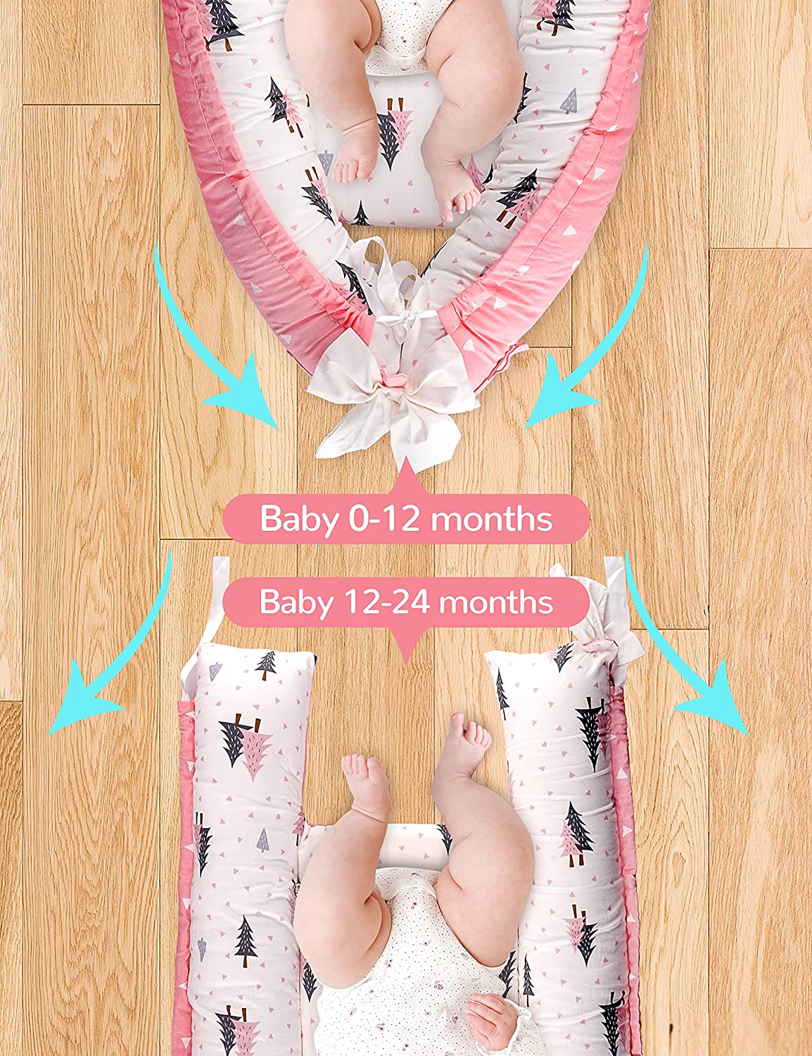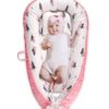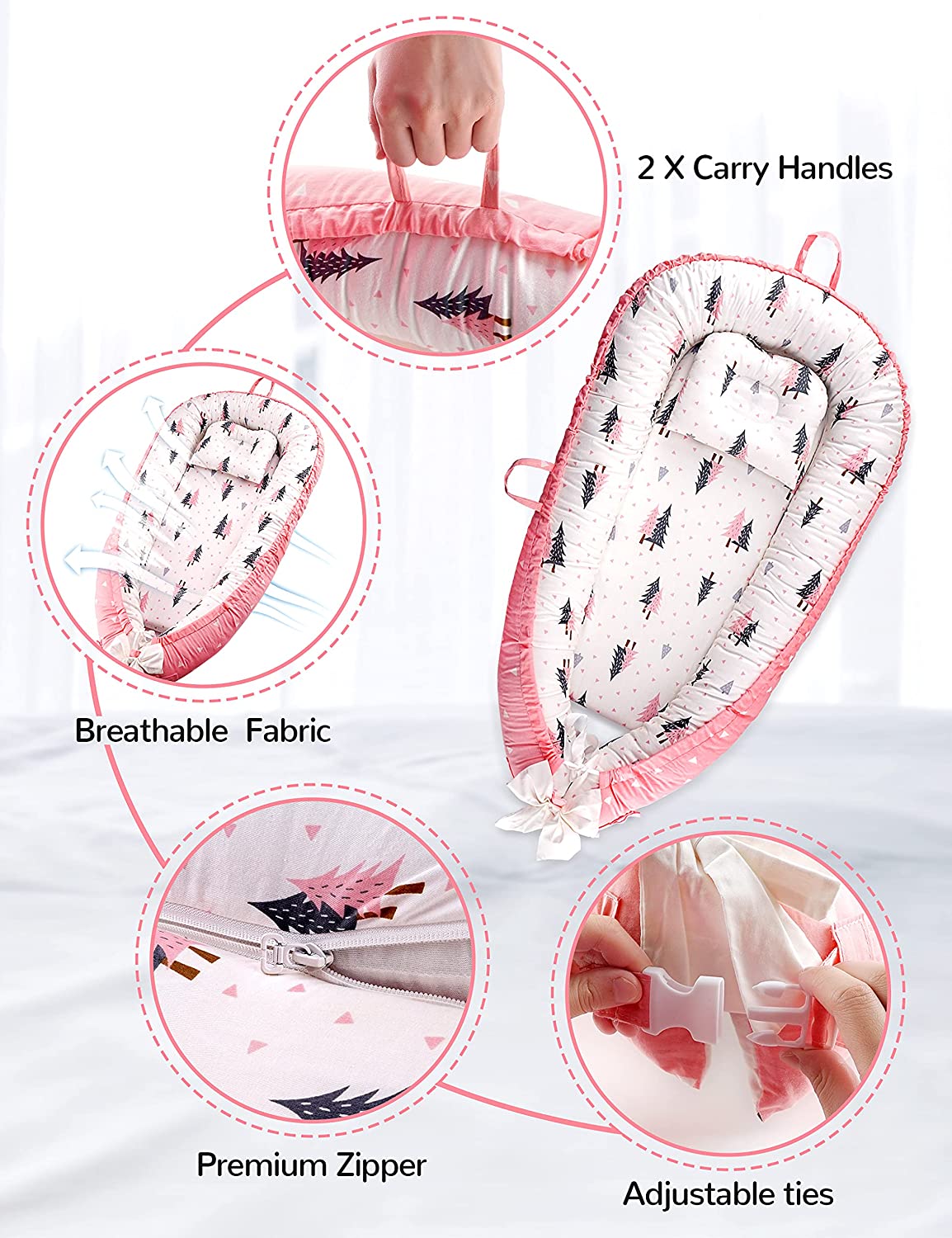 OTTOLIVES Baby Nest Baby Lounger Co-Sleeping for Newborn 360° Protection Premium Natural Cotton Newborn Lounger Bassinet Mattress Washable Adjustable Portable Baby Bed with Pillow (Sapling Pink)