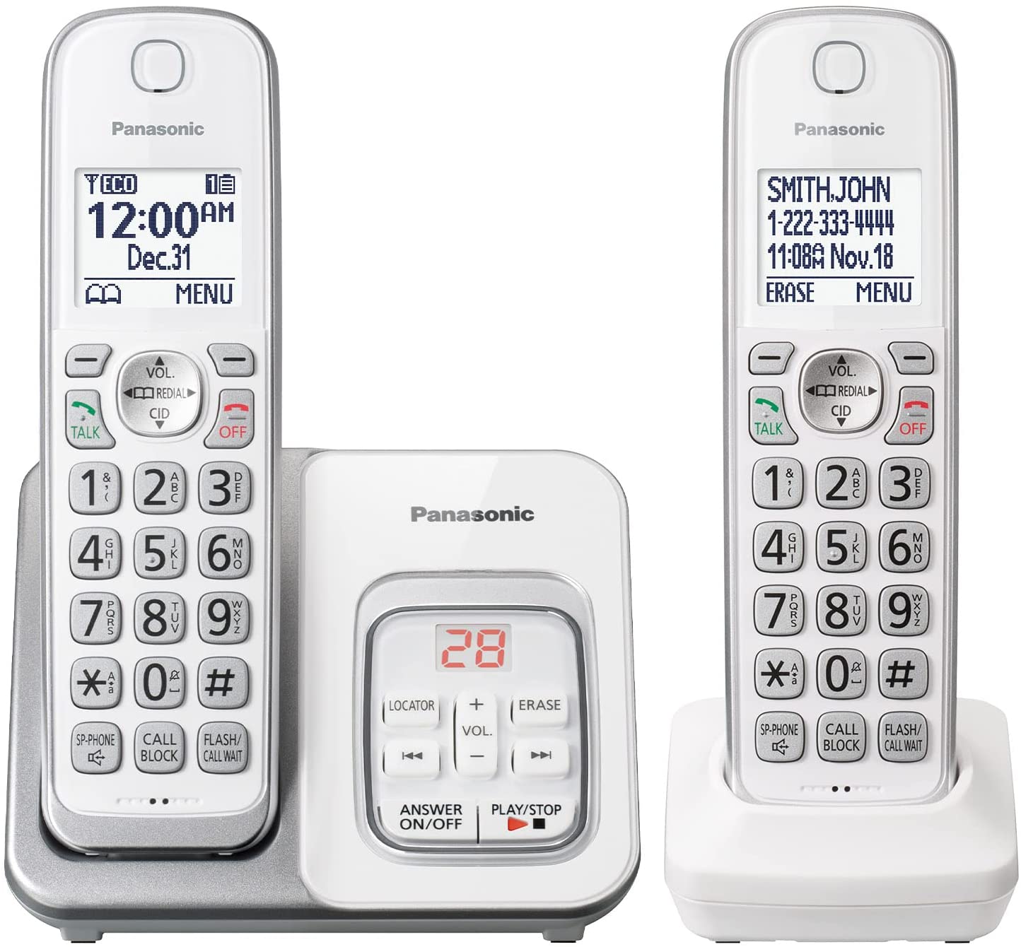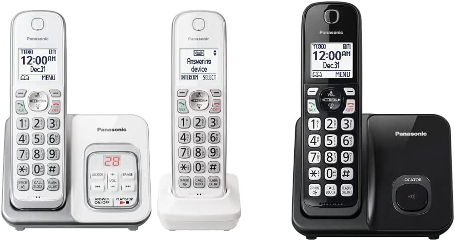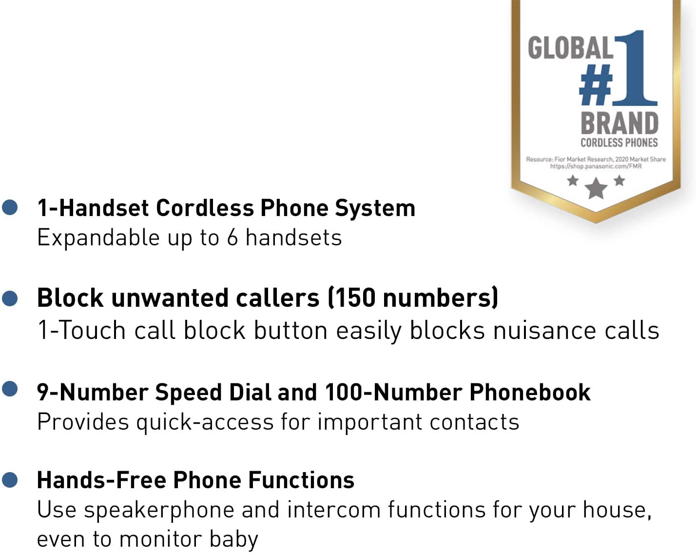 Panasonic DECT 6.0 Expandable Cordless Phone (White/Silver) & Cordless Phone System, Expandable Home Phone with Call Blocking, Bilingual Caller ID and High-Contrast Display, 1 Handset (Black)