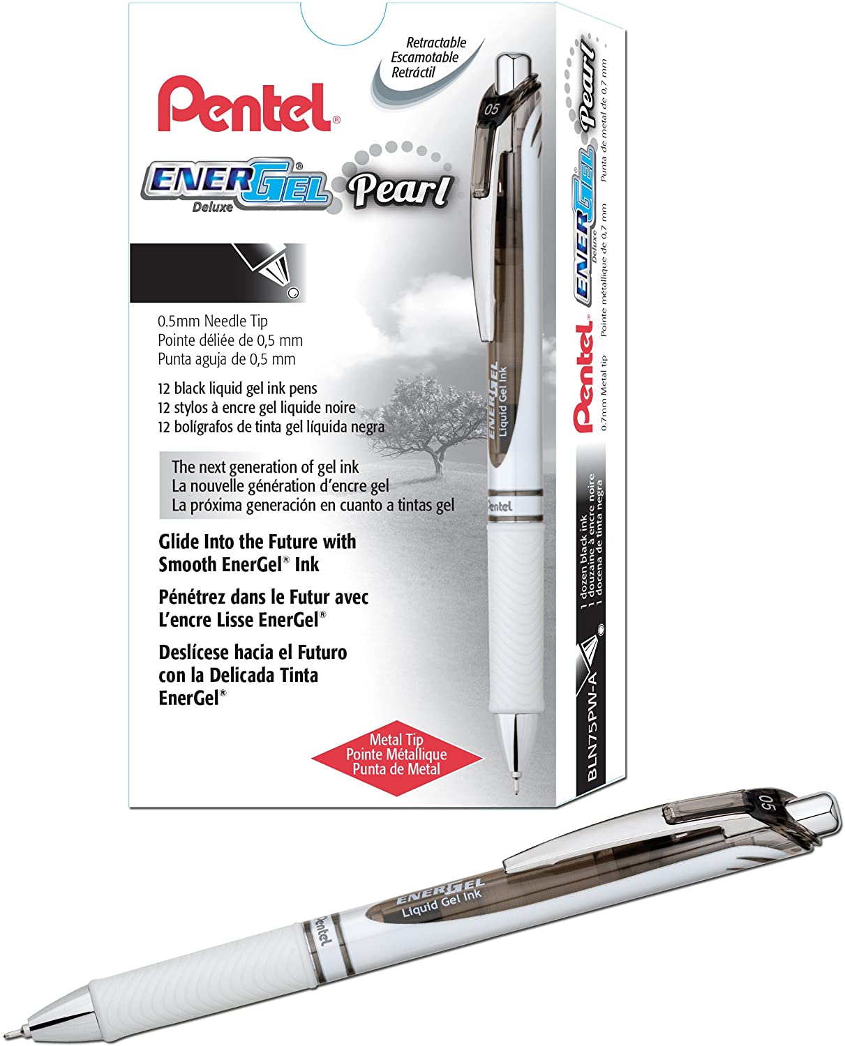 | Model Name | Pentel EnerGel Pearl Deluxe RTX Liquid Gel Pen, 0.5mm, Fine Line, Needle Tip, Black Ink, Box of 12 (BLN75PW-A) |
