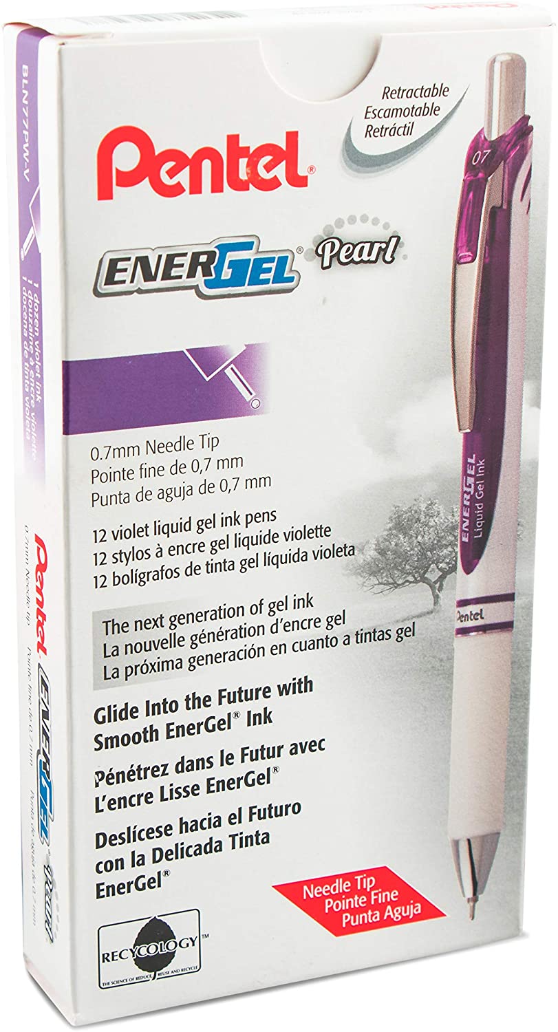 Pentel Gel Ink Pen, Pearl Retractable Gel Pen, (0.7mm) Medium Point, Needle Tip, Violet Ink, 12 pack (BLN77PW-V)