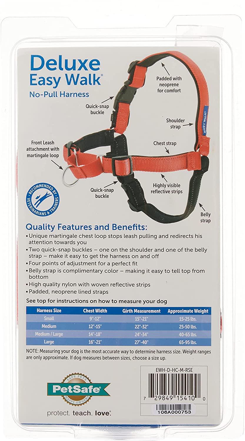 PetSafe Easy Walk Deluxe Dog Harness, No Pull Dog Harness – Perfect for Leash & Harness Training – Stops Pets from Pulling and Choking on Walks – Medium, Rose
