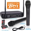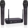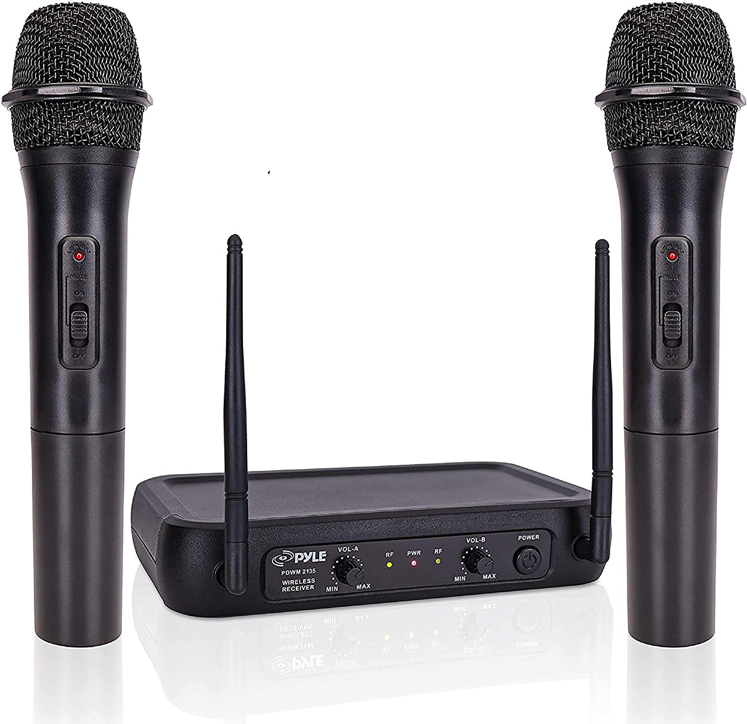Pyle Channel Microphone System-VHF Fixed Dual Frequency Wireless Set with 2 Handheld Dynamic Transmitter Mics, Receiver Base-for PA, Karaoke, Dj Party (PDWM2135) , Black