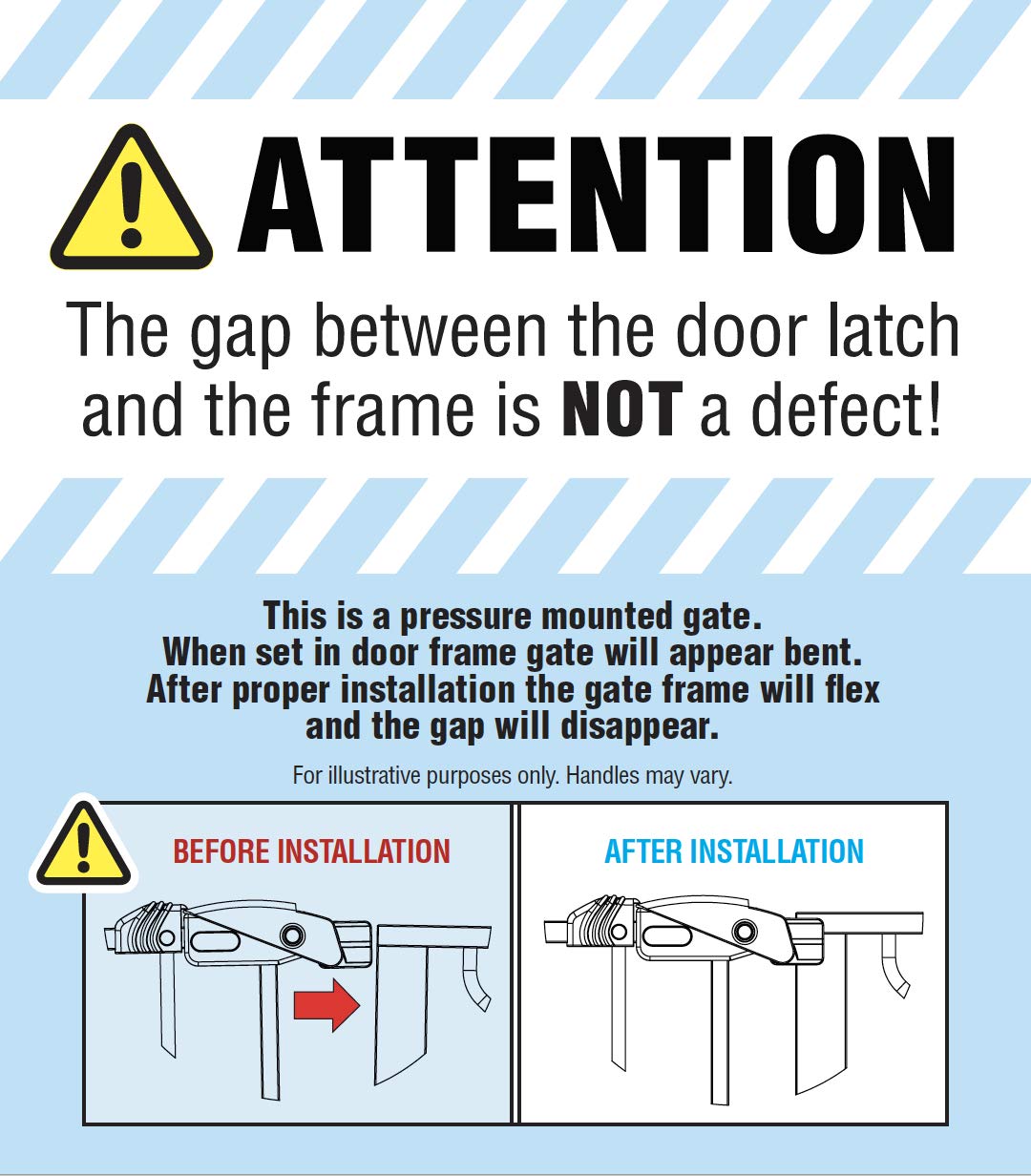 EASY TO USE AND SET UP: Pressure mount design that is quick to set up. Please note, before installation there will be a gap between the gate latch and the frame which is not a defect and it is not bent. This gap will be eliminated once installed.