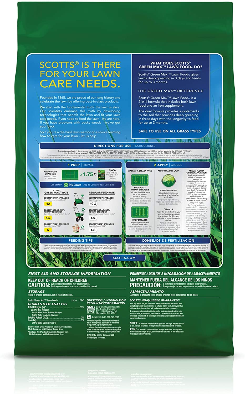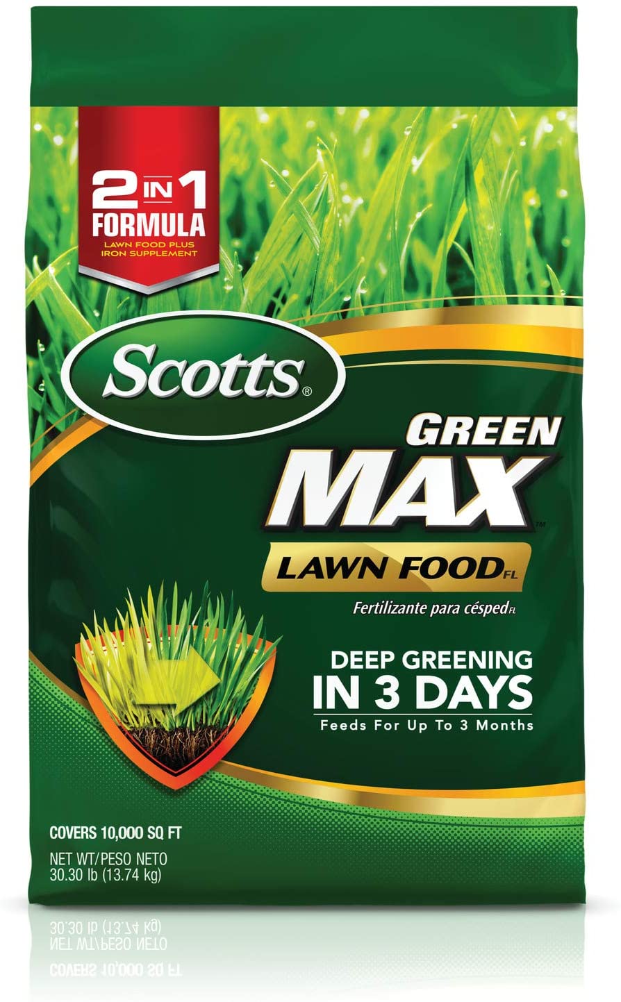 - Scotts Green Max Lawn FoodFL is a 2-in-1 formula: fertilizer and iron supplement