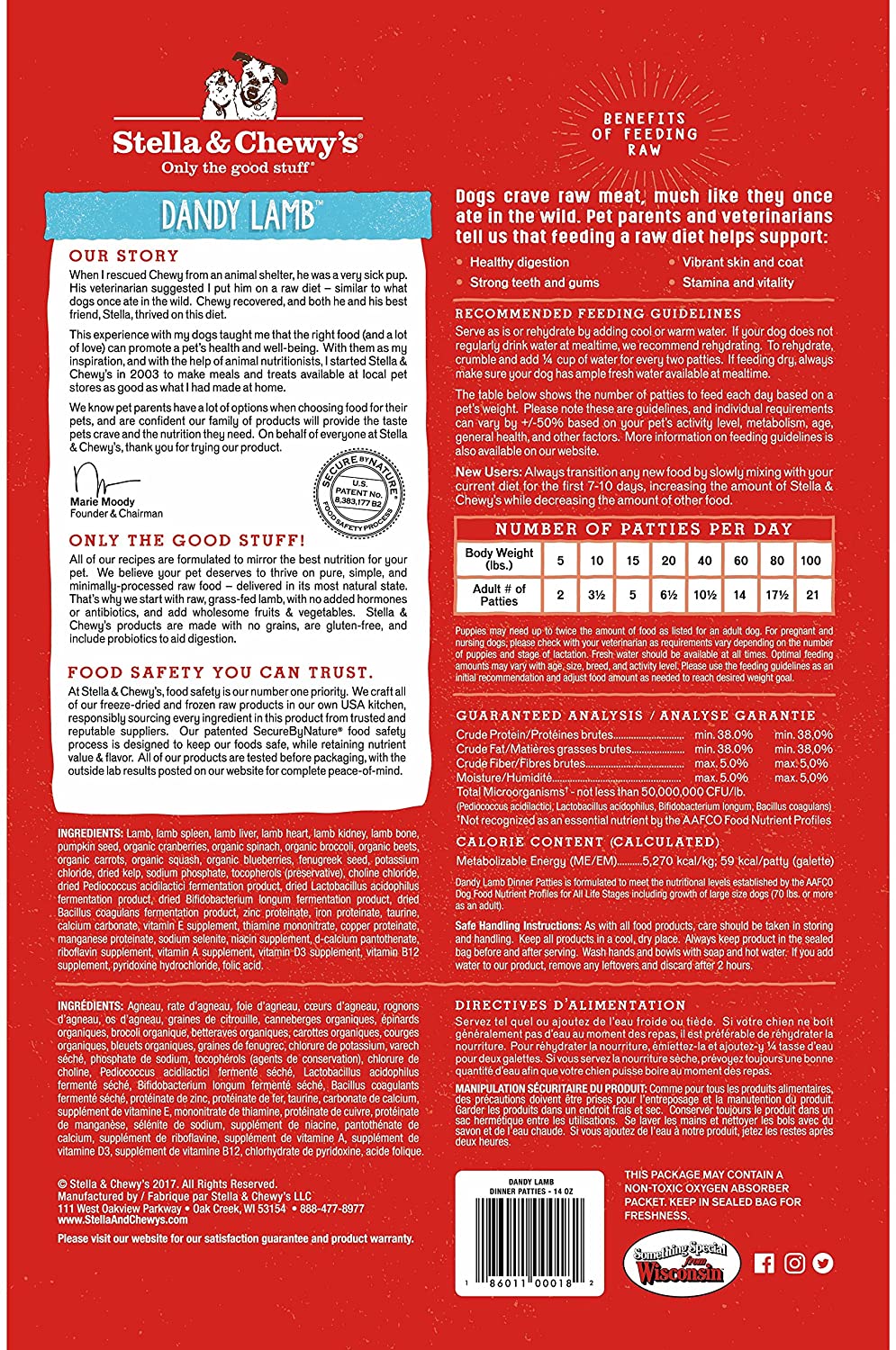 - Made in the USA – Dandy Lamb Dinner Patties’ all-natural recipe is crafted with care in small batches in Stella and Chewy’s own USA kitchen to provide the highest levels of protein-rich meat and quality grain-free nutrition for your pet