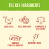 - Only the good stuff! Dogs naturally crave meat, much like they ate in the wild. That’s why every batch of Duck, Duck, Goose Dinner Patties starts with 95 percent cage-free poultry, organs and bone plus 100 percent organic certified fruits and vegetables to guarantee your pet is eating as nature intended. All ingredients are responsibly sourced.