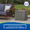 - DECK STORAGE BOX: Beautiful plastic outdoor box has a 22-gallon capacity for patio, deck, yard, porch, garage, and shed storage!